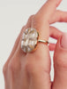 To celebrate this solemn moment with a touch of originality, the Esmée brooch is an obvious choice. Its retro charm, its captivating mix of gold and silver, its petals adorned with zircons and its craftsmanship make it an exceptional jewel, perfect for enhancing a structured white suit or a silk blouse tucked into a flowing midi skirt. Worn over an elegant jacket, it highlights a look that is both modern and timeless. A low bun, accessorized with a short veil, will enhance this silhouette, between minimalism and refinement.