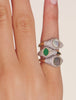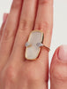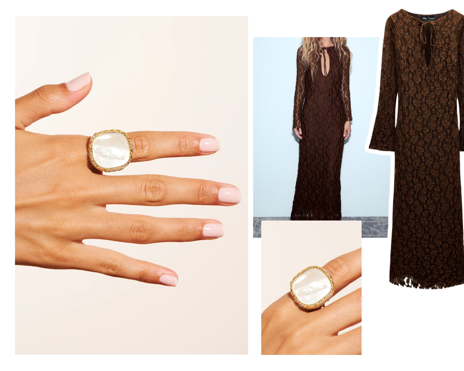 Mother-of-pearl, soft and luminous, illuminates a winter outfit with a discreet but striking elegance. With its central stone and sculptural curves, the Dona ring is the first volunteer to invite itself to your side. As soon as it is put on your finger, it will subtly stand out. In this same family of XXL pieces, the Sangha ring is slightly more minimalist but just as remarkable! It likes to play on contrasts and stands out as an ally of choice for those who love jewelry with a strong character. The Tara hoop earrings bring that little twist so appreciated: light and full of freshness, they never fail to add a touch of modernity to your look. To complete the whole, the Sangha necklace , (re)known for its dazzling pendant, acts as a final point: luminous, but without stealing the spotlight from the rest of the jewelry.