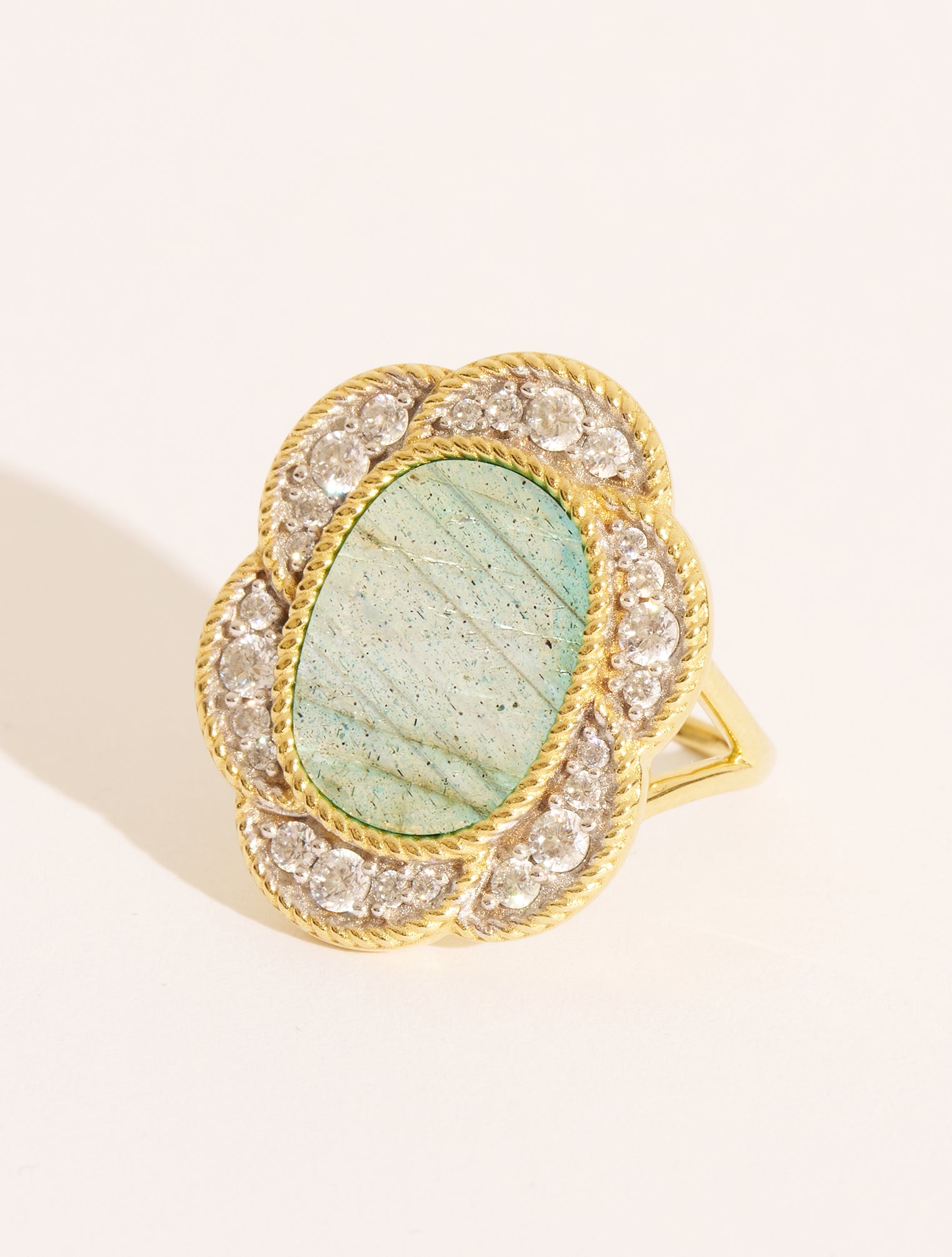 In the image of nature, its sculptural silhouette evokes perfect petals faceted with silver zircons, delicately arranged around a central oval stone. Each finely crafted detail reflects the unique know-how of our artisans, combining the purity of silver with the warmth of gilding. As precious as a piece of jewelry from yesteryear, this piece with its vintage and modern style enhances your daily outfits and brings a touch of sparkle to your most sophisticated looks.