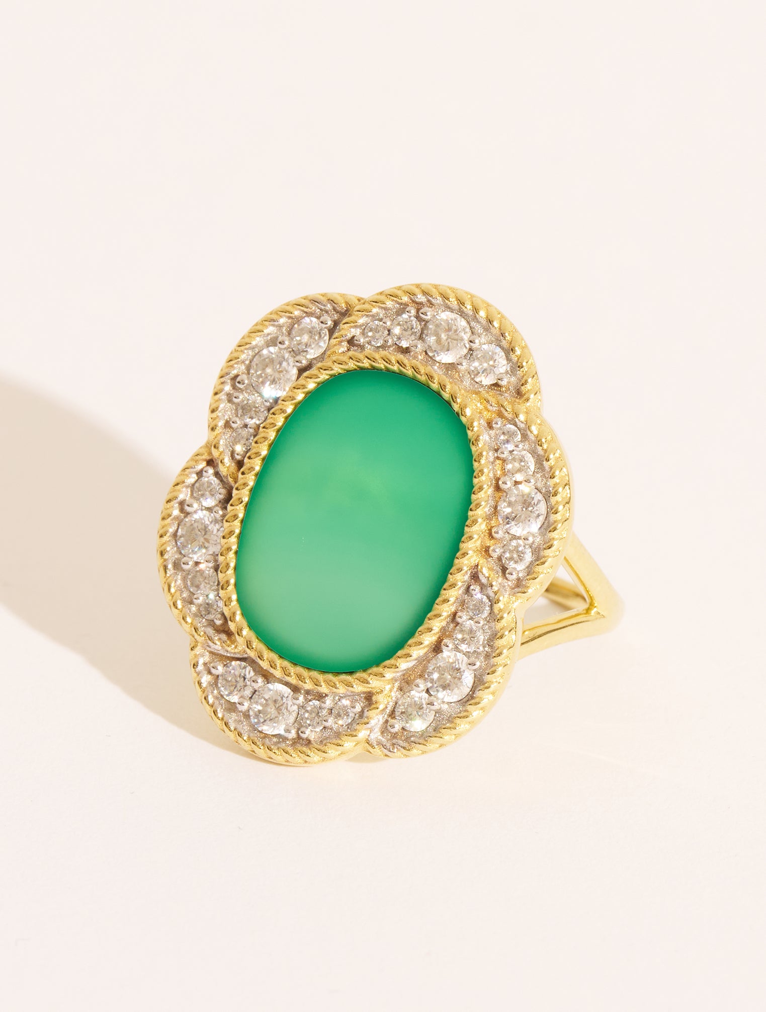 In the image of nature, its sculptural silhouette evokes perfect petals faceted with silver zircons, delicately arranged around a central oval stone. Each finely crafted detail reflects the unique know-how of our artisans, combining the purity of silver with the warmth of gilding. As precious as a piece of jewelry from yesteryear, this piece with its vintage and modern style enhances your daily outfits and brings a touch of sparkle to your most sophisticated looks.
