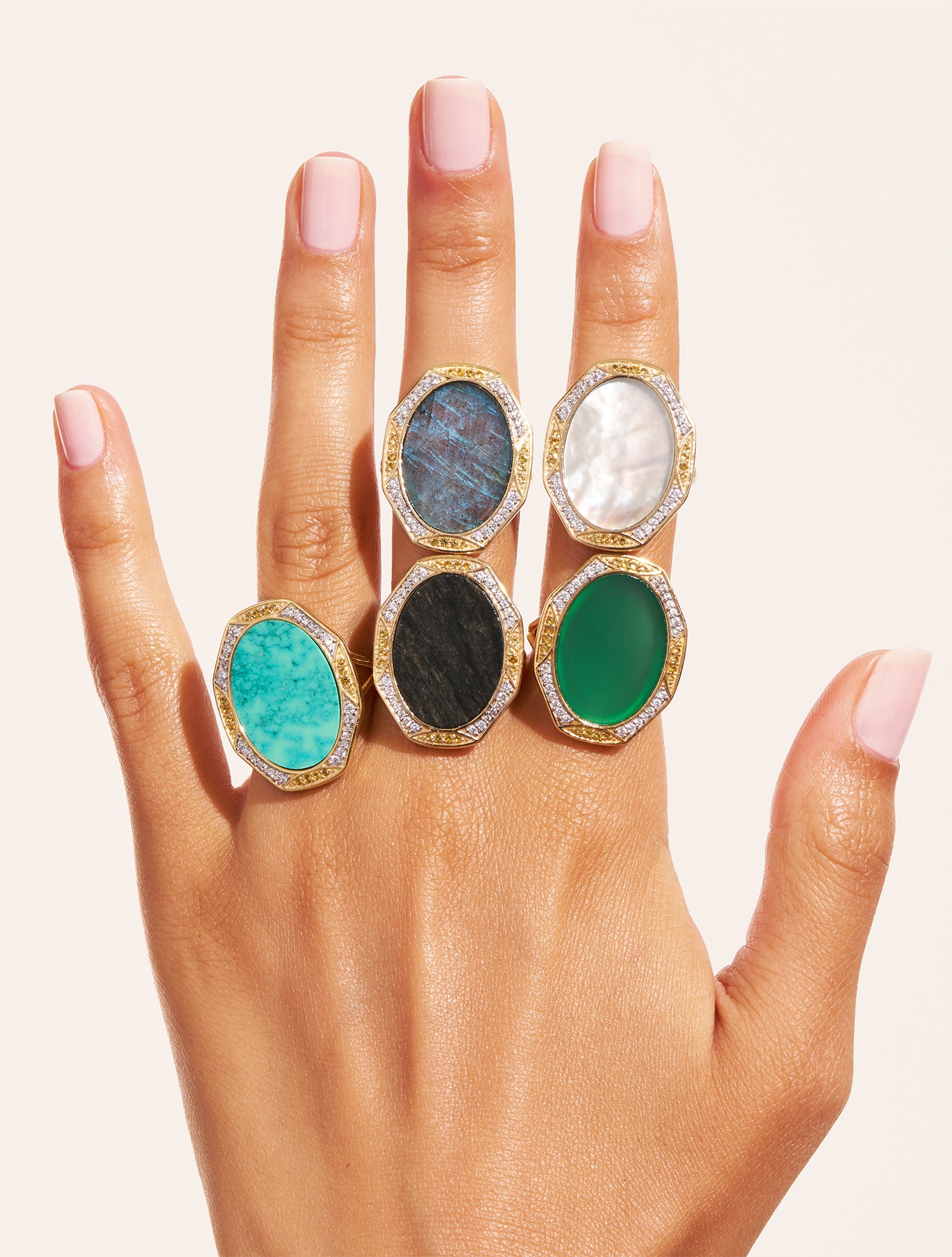 Each stone is carefully selected for its uniqueness. Its natural shades, tones, and patterns may vary, making every piece truly one of a kind. This design is available in 5 different stones.