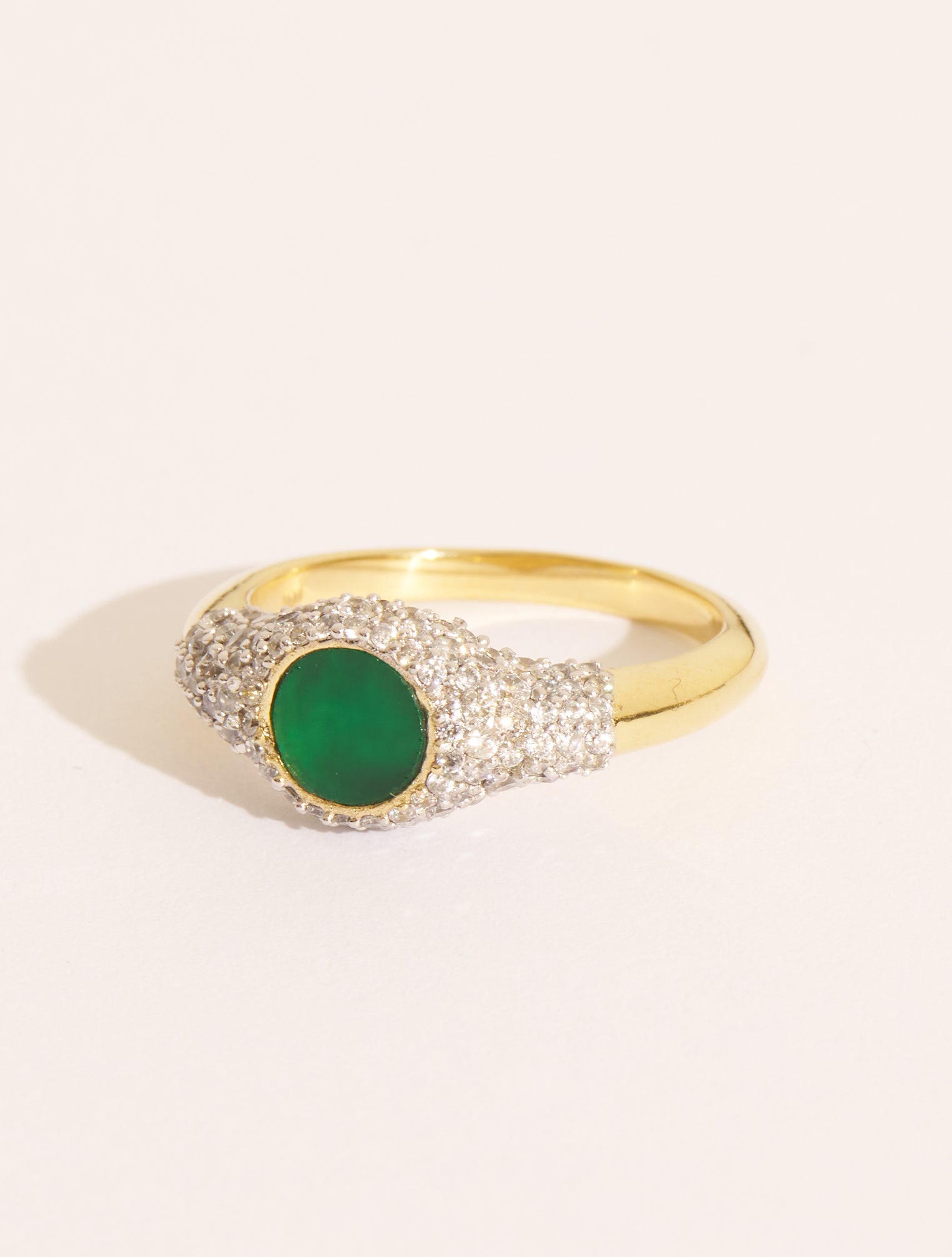 Very modern, the Sunny round signet ring shines with splendor on all hands. A nod to the style of yesteryear, this reduced model revisits the original structure of this iconic ring, this time offering a resolutely chic and contemporary twist. As round as the sun, the stone of this signet ring is surrounded by an anthology of fine zircons. Its small size makes it ideal to wear on your little finger or to combine with the two other models as pretty as it, Holi and Gigi. The more you multiply them, the more you will shine !