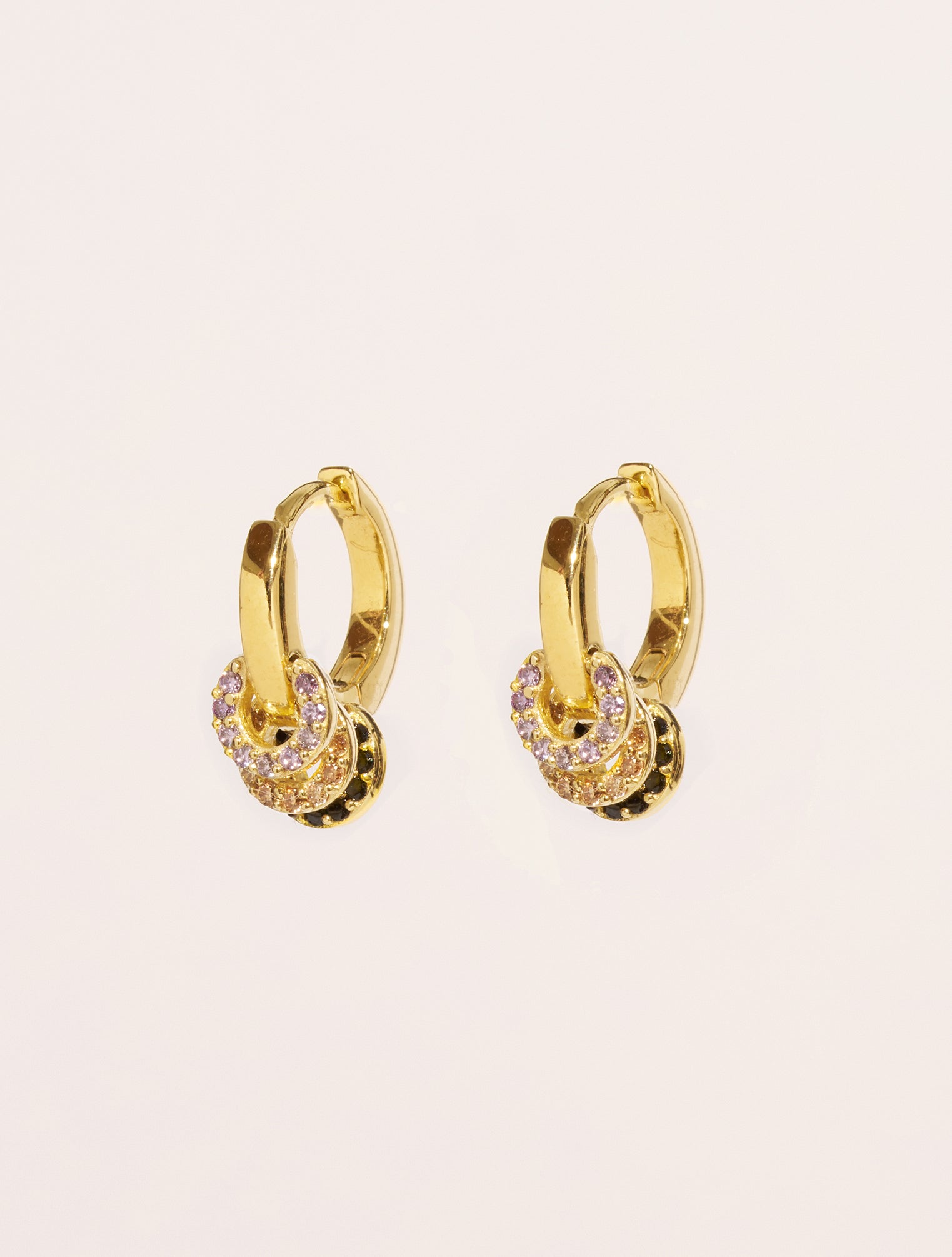 Pop in their style, graphic in their shapes, Karma earrings are unparalleled discretion. Despite this small, refined format which defines them, they remain no less detailed or worked. On the contrary, imbued with artisanal know-how, a touch of vintage and a touch of modernity, this creation is the celebration of a collection as precious as it is daring. The original arrangement of this colorful trio added to their small size makes it easy to stack this pair of hoop earrings with others. From casual outfits to evening dresses, the perfectly proportioned Karma earrings go with everything !