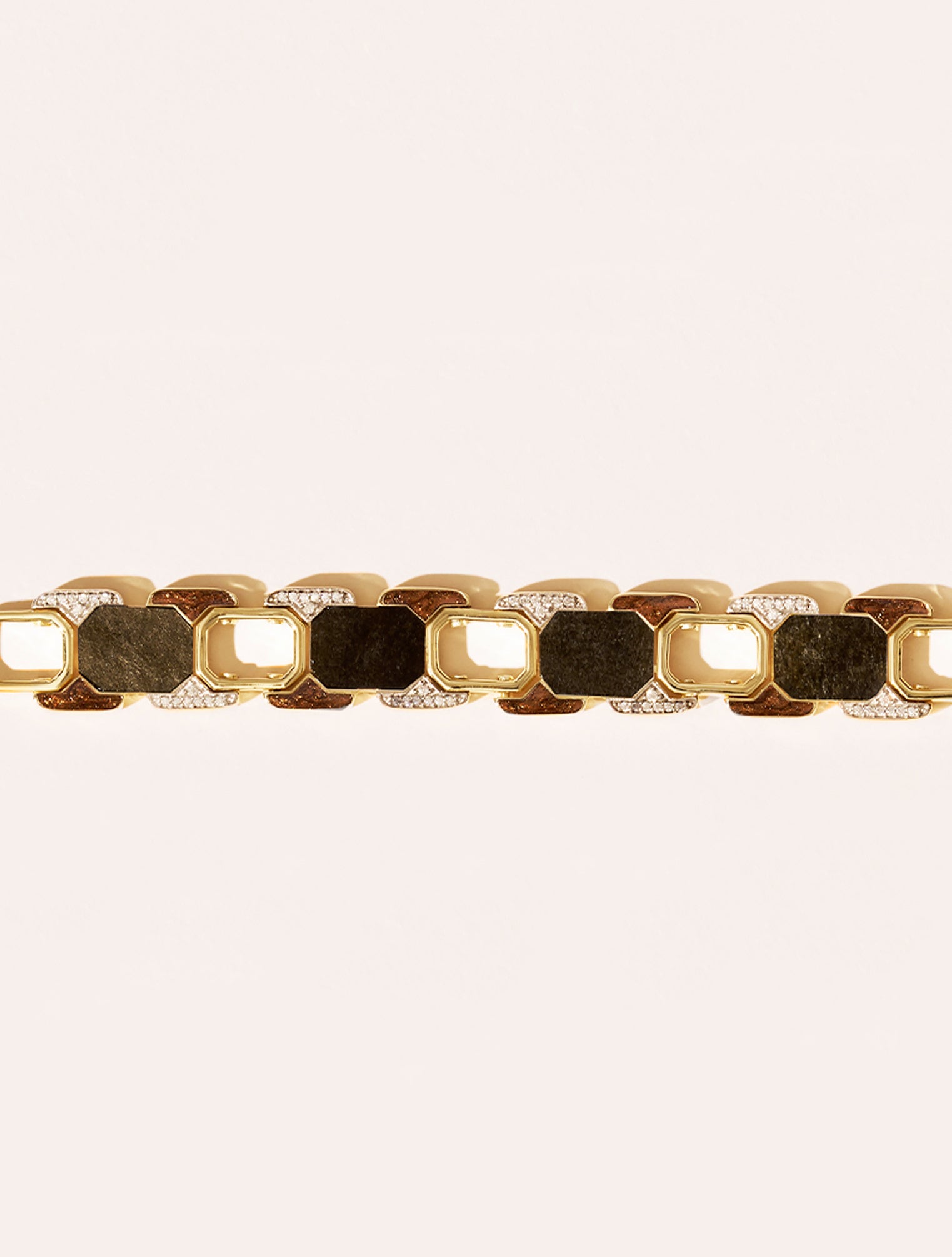 Instant dose of acrobatics thanks to the Berry golden obsidian bracelet ! If it is defined by the geometry of its hexagonal shapes, it also pleases thanks to its contrast of textures.