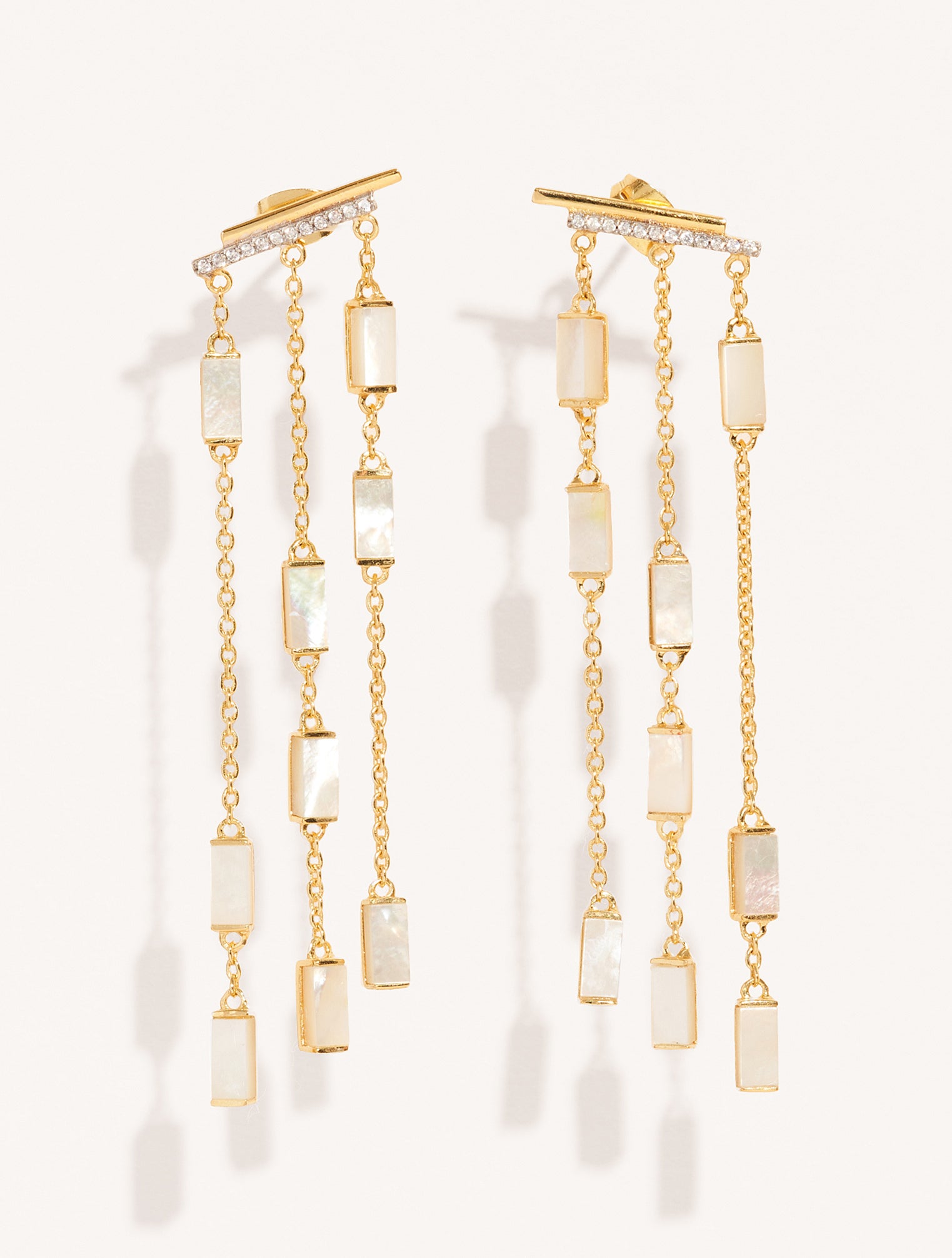 It is to the rhythm of your life and your desires that Mara earrings will dance alongside you. An essential everyday jewel, this pair orchestrates with great taste and originality zircons, small stones and fine links.