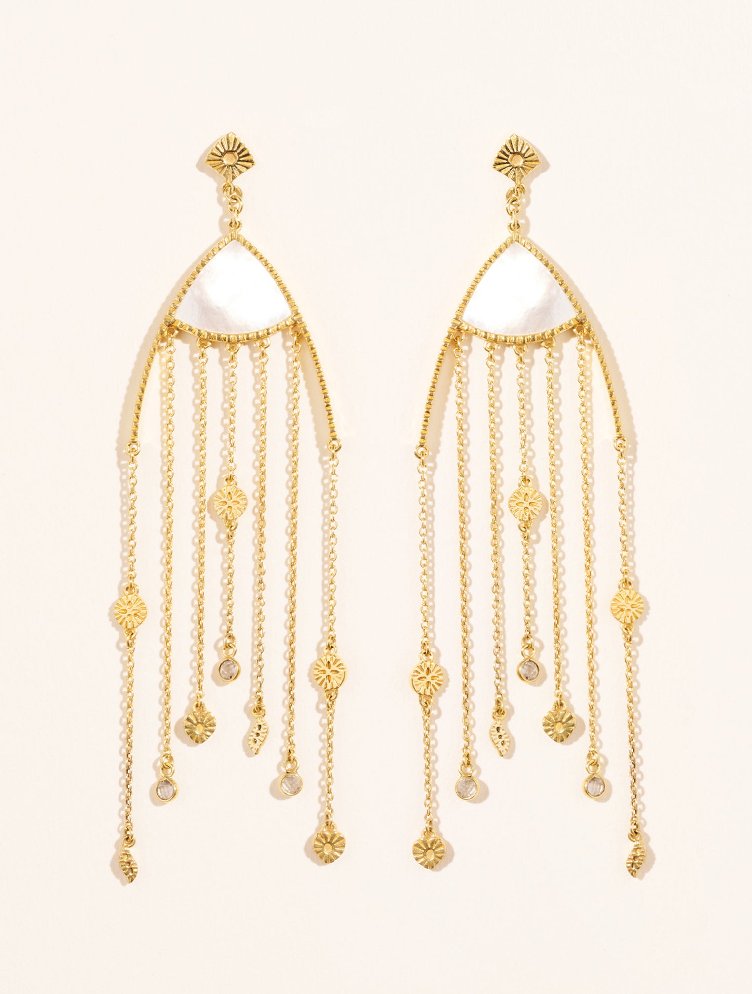 For those days when you don't know what to wear, there are the Mina earrings in Mother-of-Pearl: poetic and elaborate, they will dress up the simplest of outfits with grace.