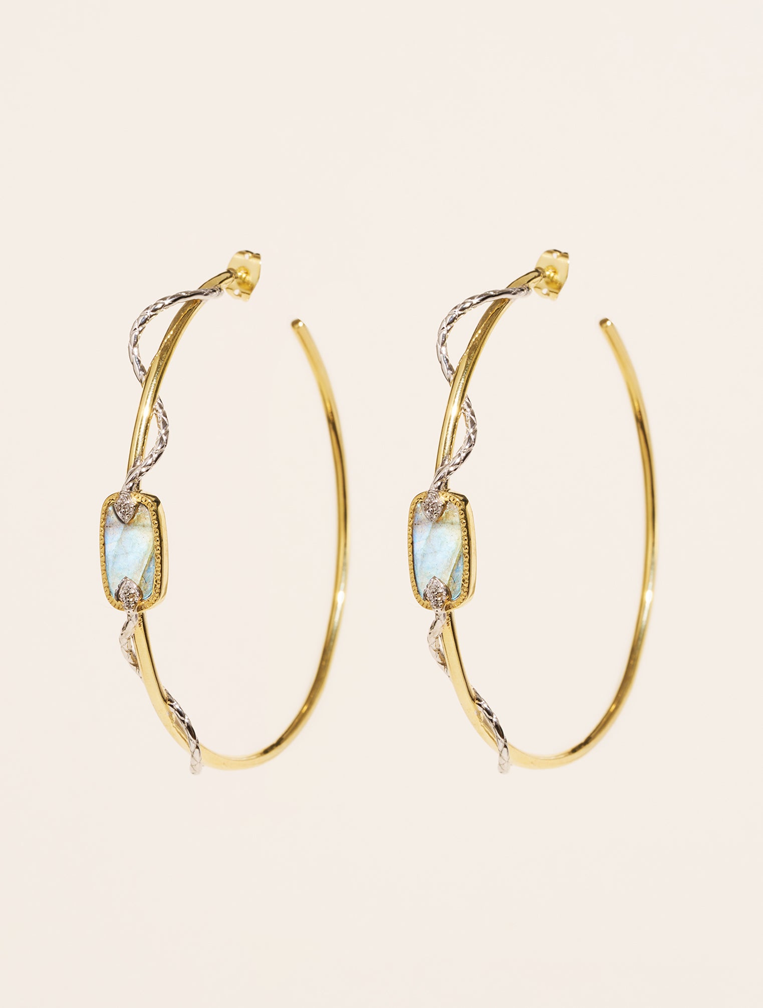 Creoles yes, but not just any hoops. At Be Maad, we like uniqueness, not banality. So we imagined the Sangha Labradorite earrings as a graphic and modern piece on which a fine stone is nestled, handcrafted by our artisans.