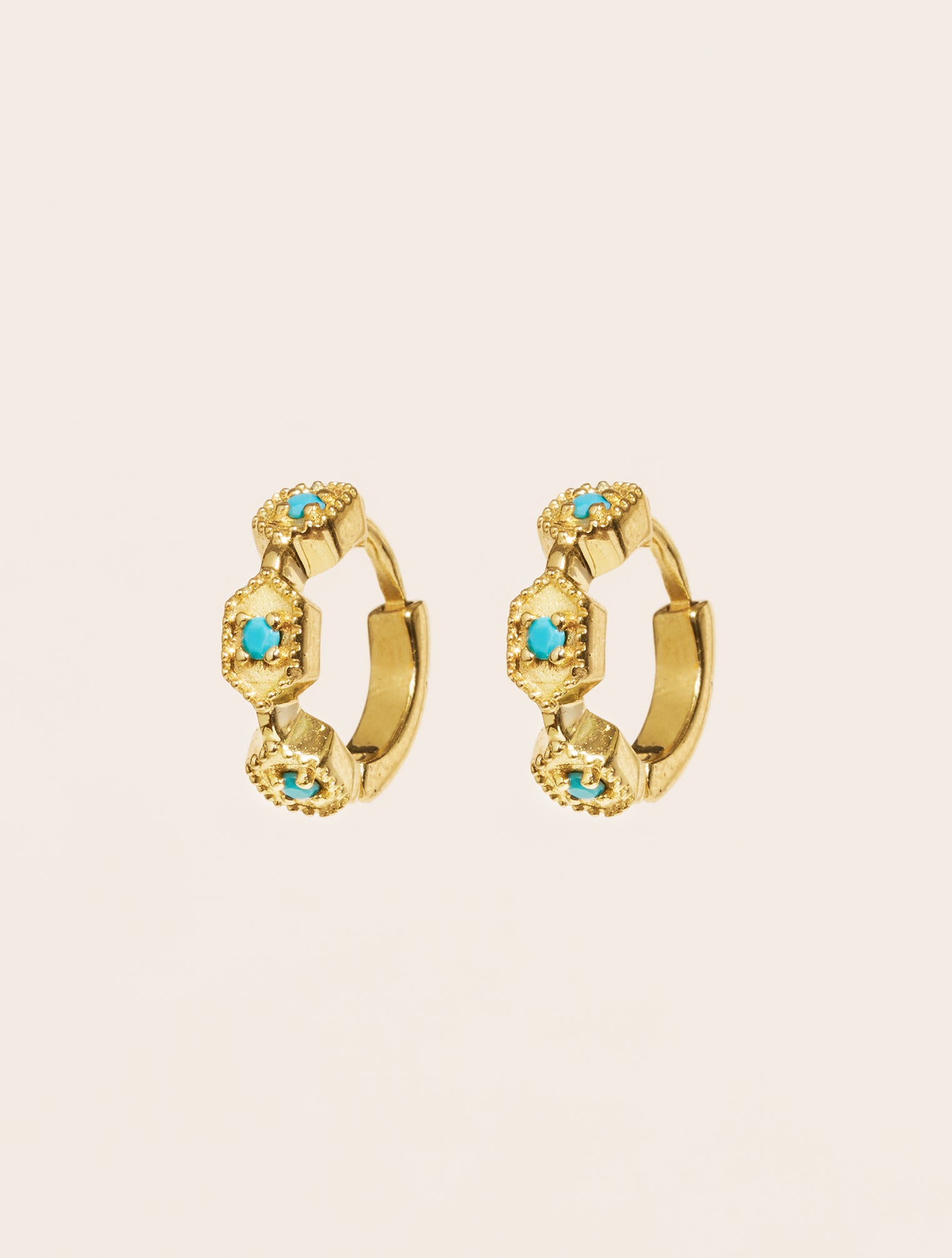 Inspired by the stars, the Tara line presents a variation of jewelry as delicate as it is magical which will illuminate your outfits with their soft golden reflections. To be worn alone or stacked, these refined hoop earrings, adorned with small solar tassels, will become an everyday essential.