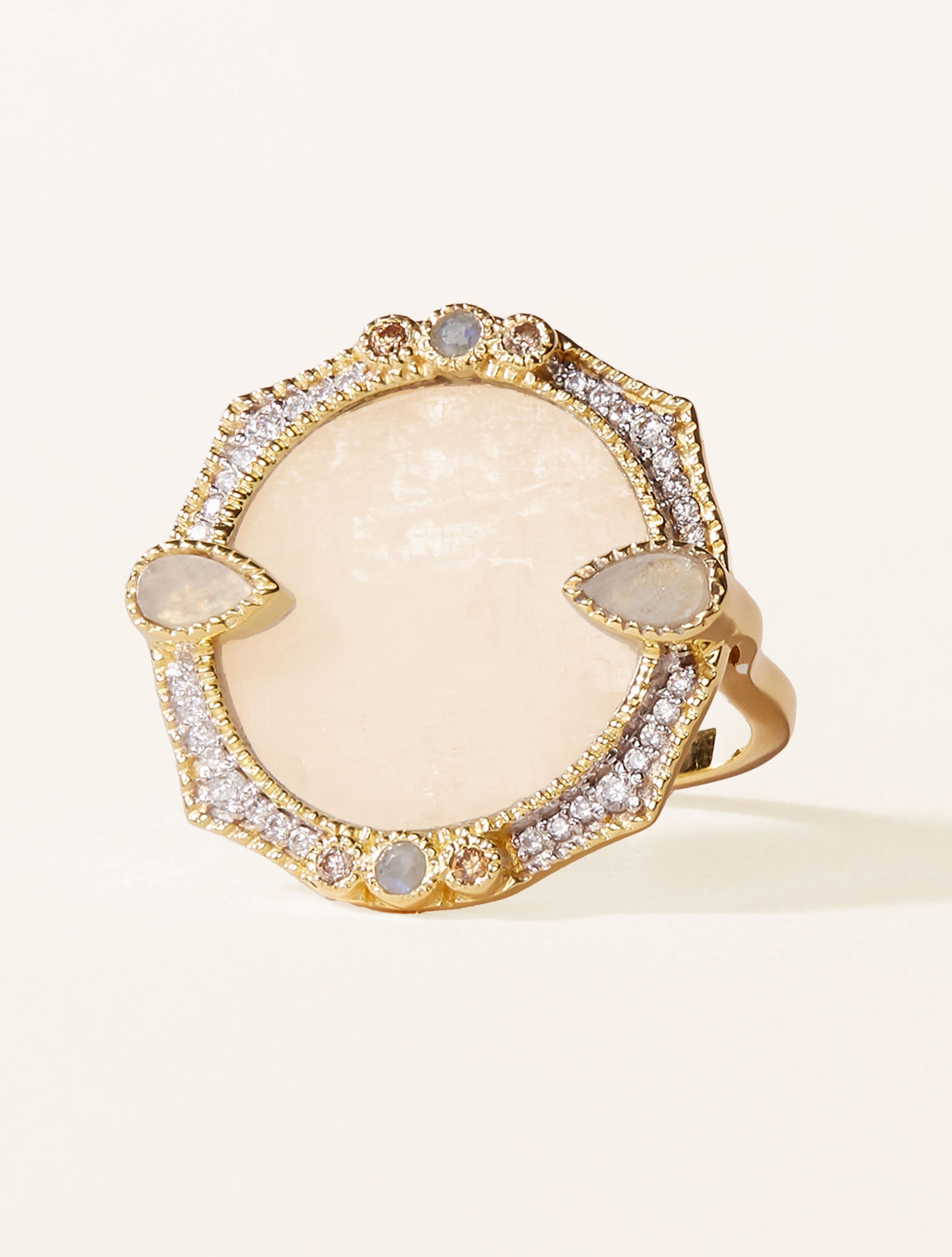 The Janih Moonstone ring, art deco inspired, is designed to dress up any outfit, from the most classic to the most daring. Handcrafted with fine stones, all you have to do is find the one which suits you.