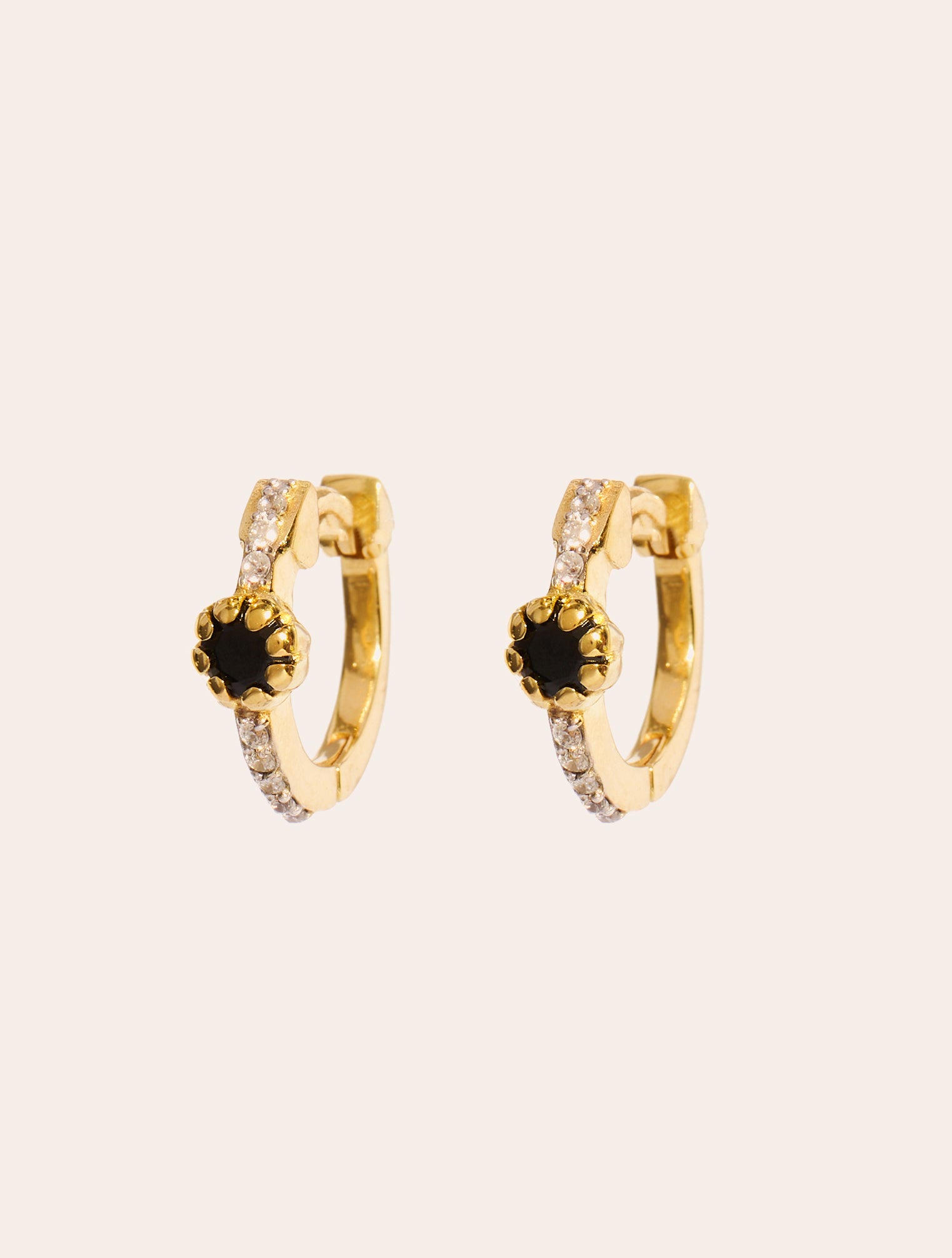 Between simplicity and originality, these mini hoops featuring a central black zircon elevate the head’s bearing with brilliance. Each zircon, set and aligned one after the other, reflects the artisanal expertise that shapes gold and light in perfect harmony. Worn alone or stacked, these creations become an everyday essential.