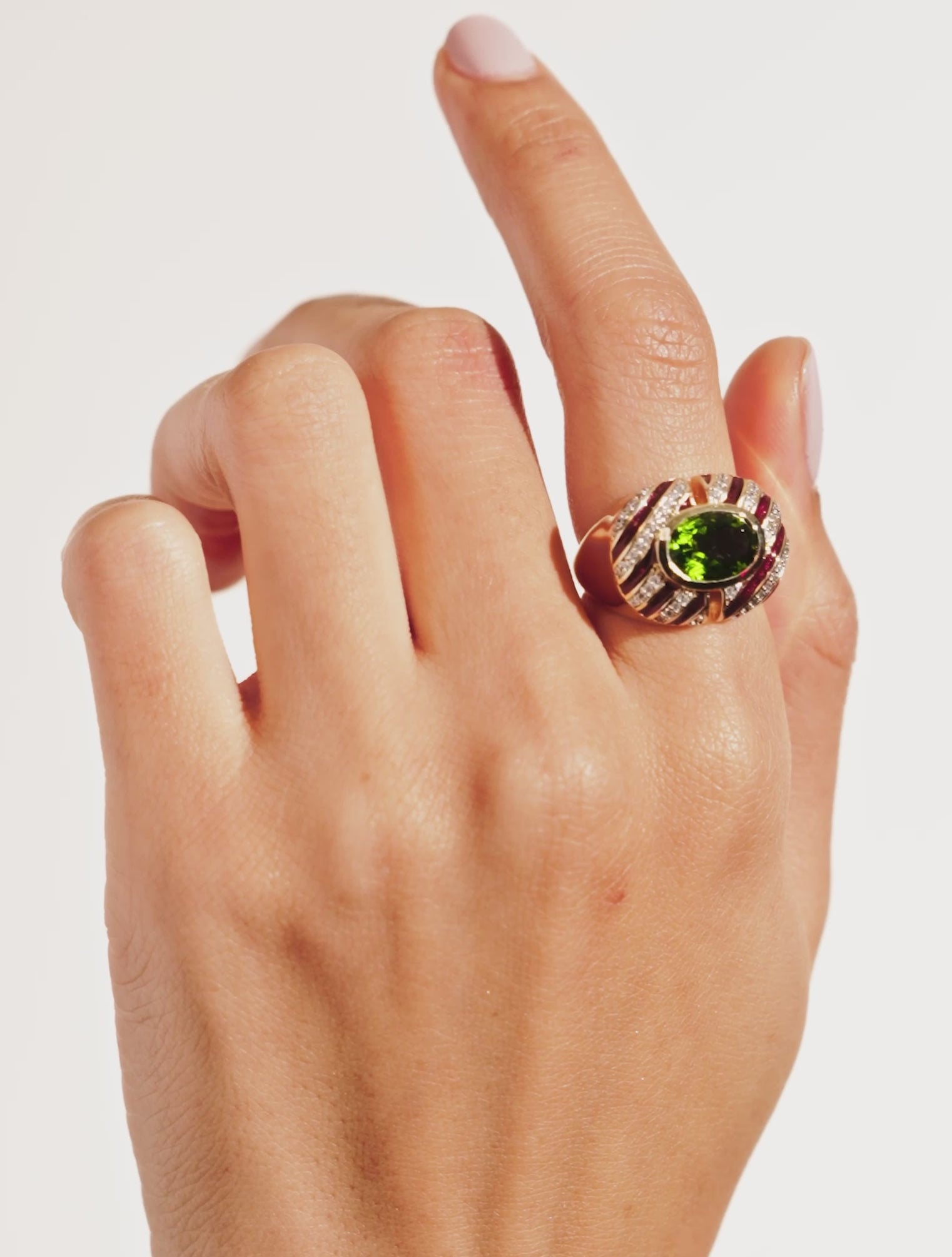 Zèbre Ring – Green-Toned Quartz & Burgundy Enamel