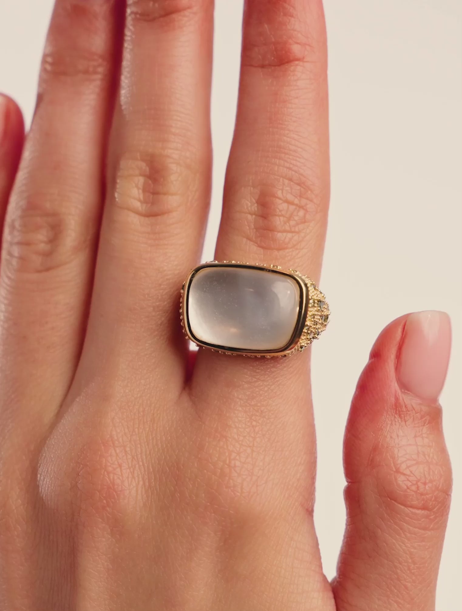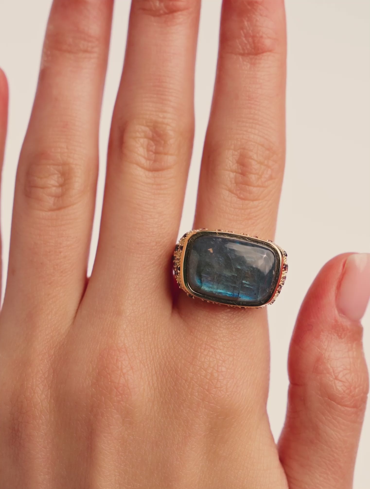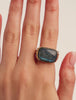 Les détails surpiqués sur les côtés lui confèrent une texture raffinée et un caractère inimitable. À la fois puissant et délicat, ce bijou artisanal habille le doigt avec une présence assumée.