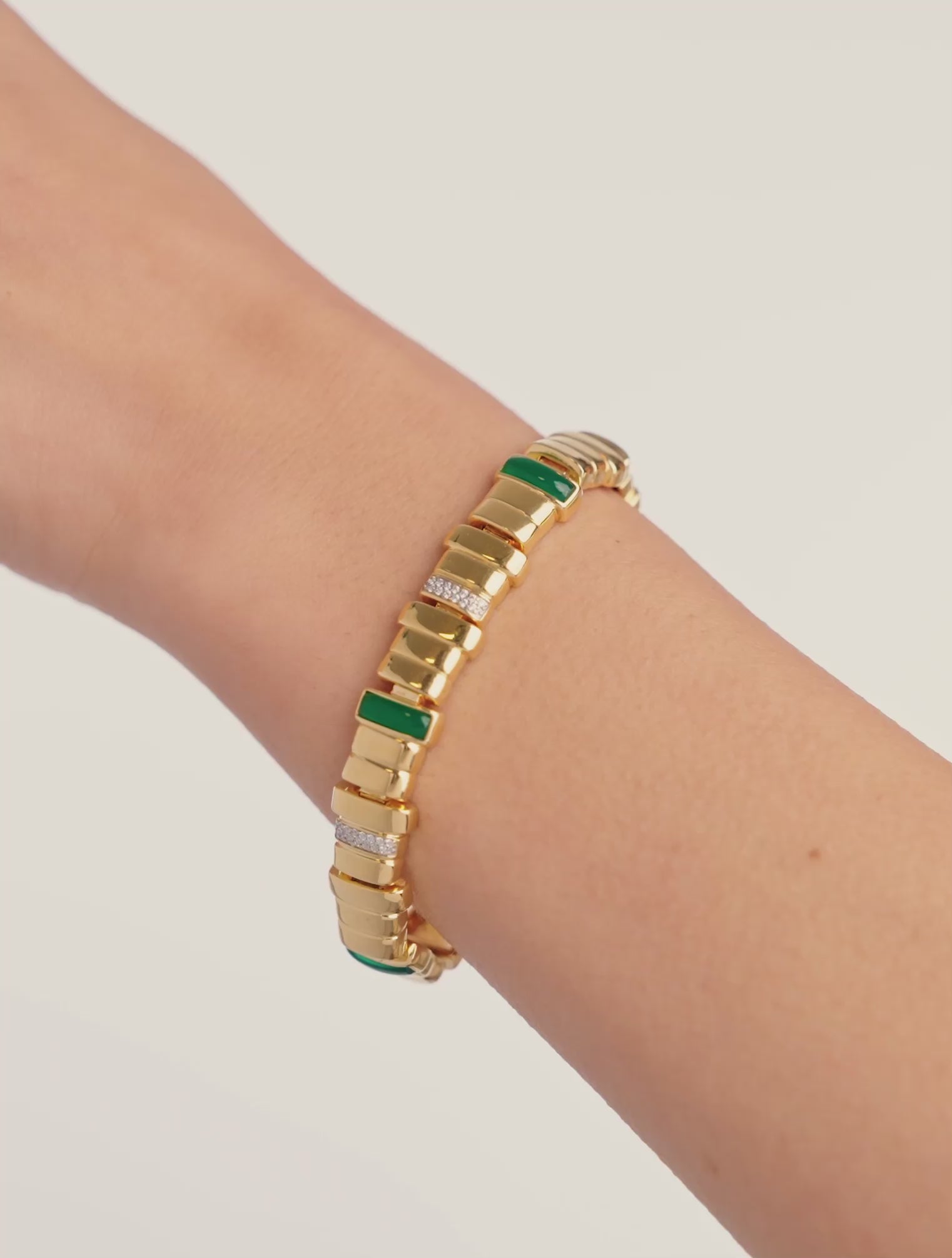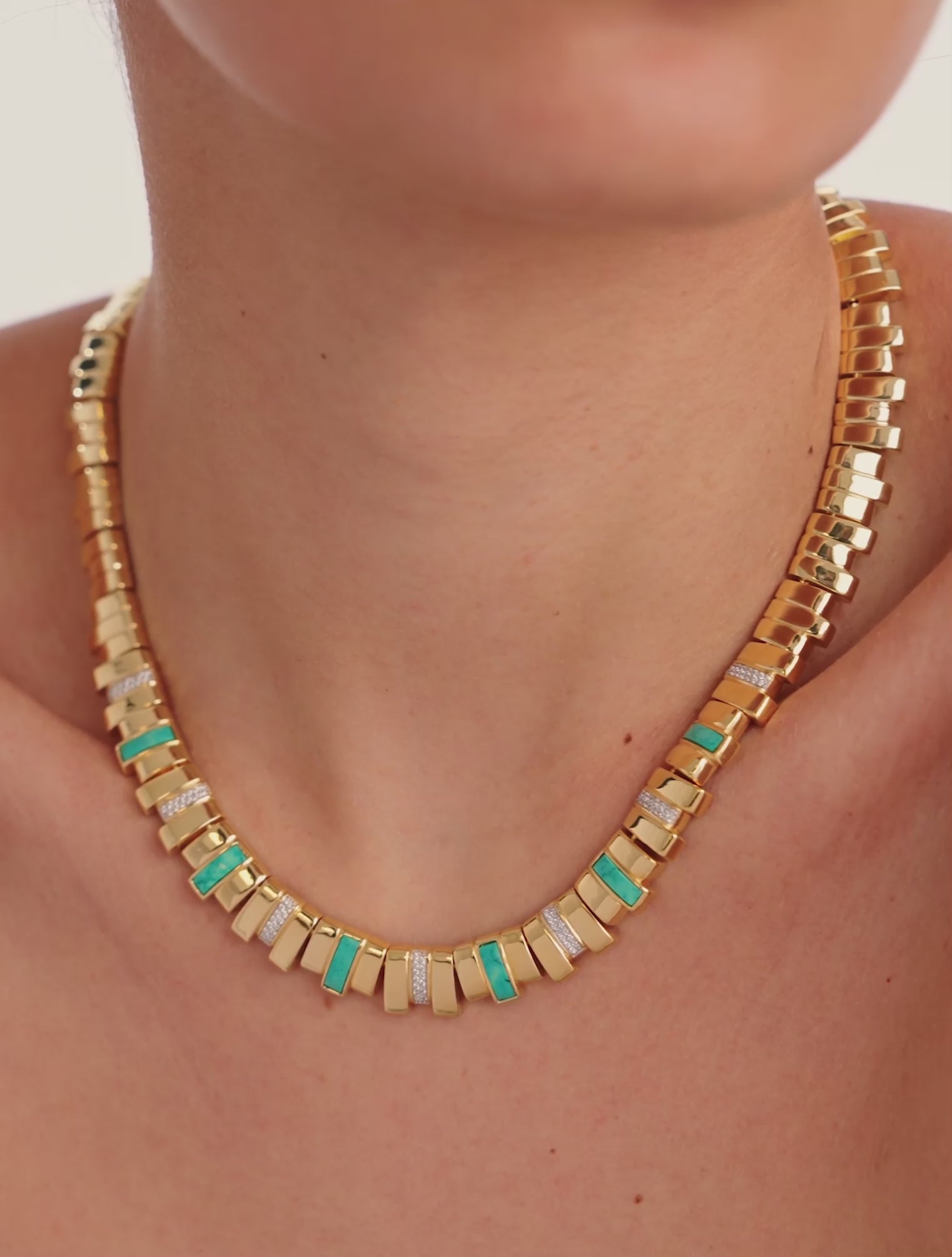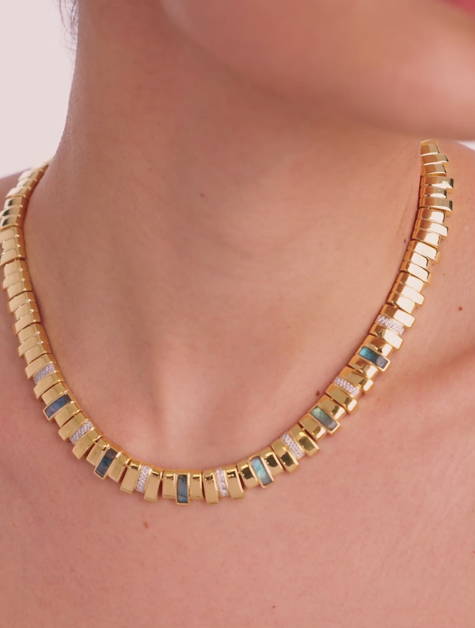 Entre puissance et élégance, Empreinte est une collection pensée pour tatouer votre style d’une trace artisanale et indélébile. Hommage au vintage, elle incarne une rencontre entre l'art et le corps où chaque bijou raconte votre histoire. Bague, bracelet, collier : ces trois créations sont liées par la même signature visuelle et raffinée. Zircons et pierres rectangulaires se relaient subtilement, sublimant l’aspect brut et texturé de chaque pièce.