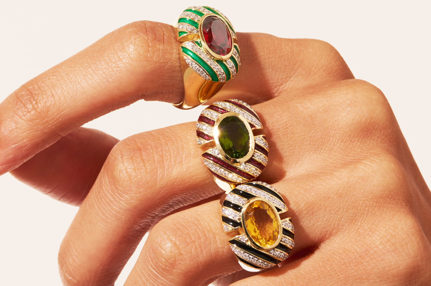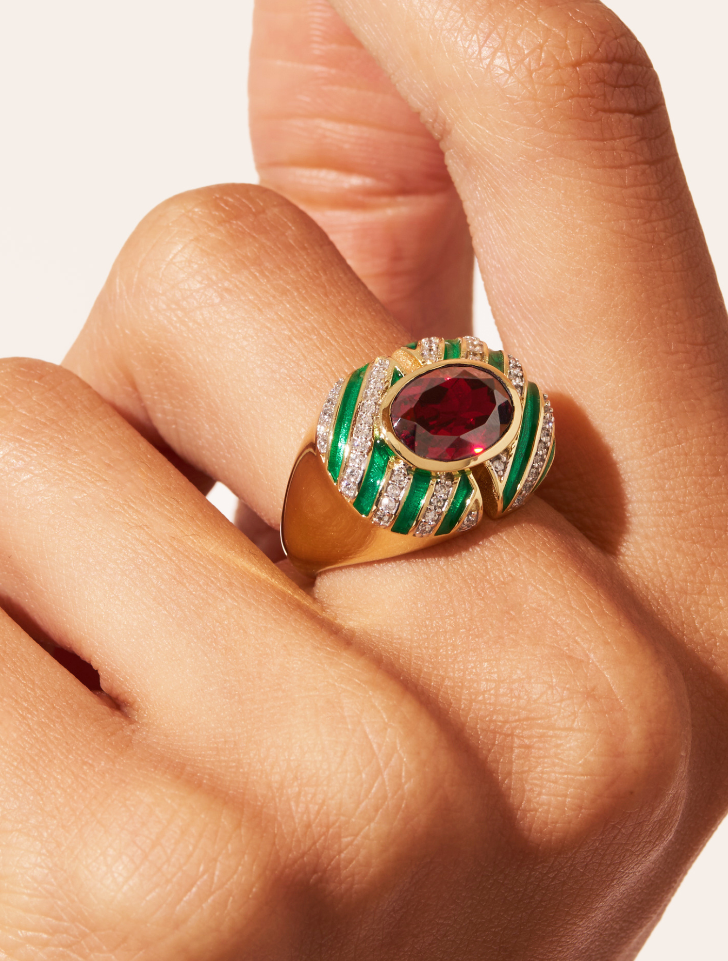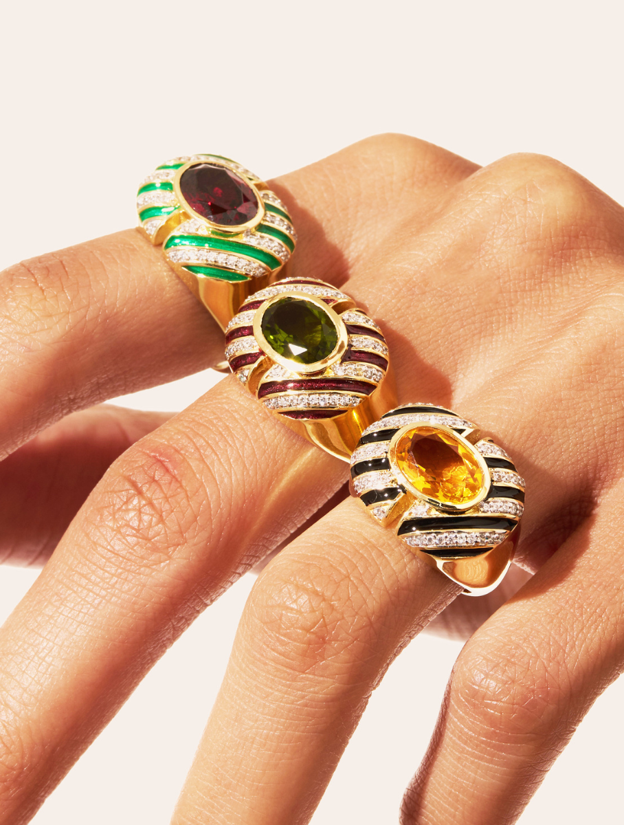 Avec ses rayures sculptées et sa pierre centrale facettée, la bague Zèbre met en lumière l’art du contraste. Entre rangées claires et rangées obscures, ses lignes alternées et sa forme ajourée lui confèrent une grande originalité.