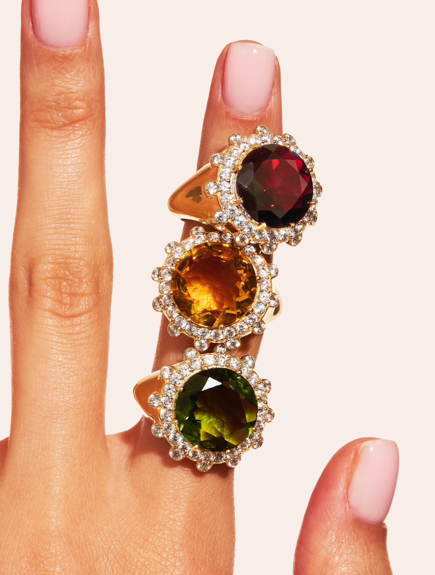 Sculpturale et audacieuse, la bague solaire Soleil Sauvage en Kaki brille d’un éclat assumé. Son grand zircon central capte chaque reflet, tandis que les plus petits qui l’entourent intensifient son caractère chic et artisanal. Travaillé comme une matière en mouvement, son anneau texturé joue avec la lumière et affirme une présence forte, entre opulence et modernité.