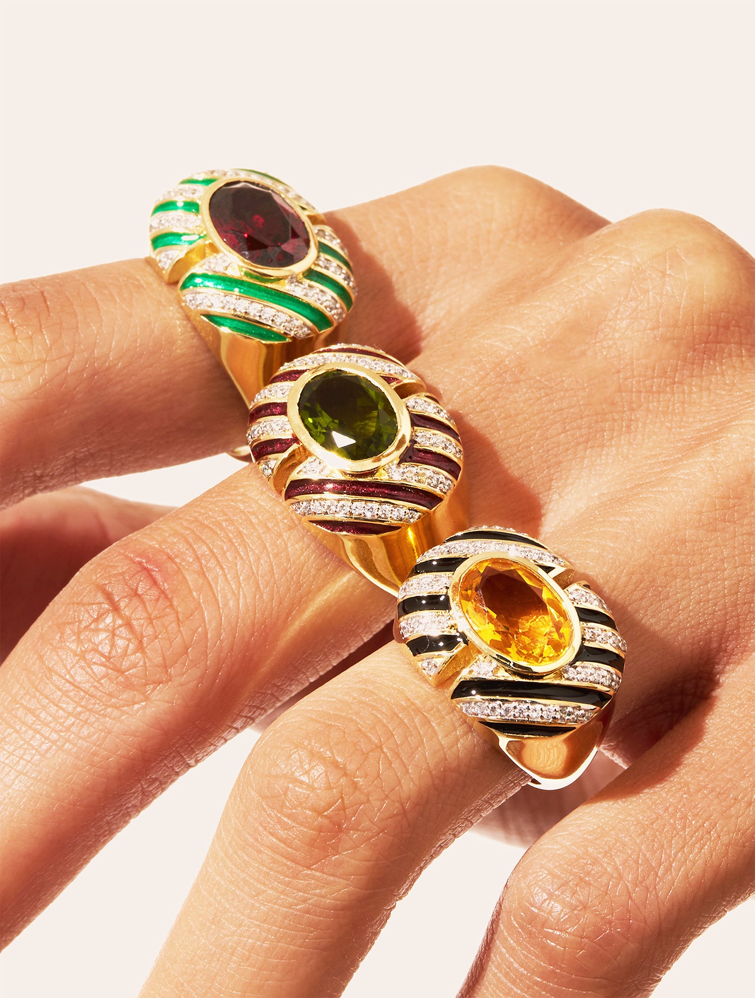Bague Zèbre - Quartz coloré vert & émail bordeaux