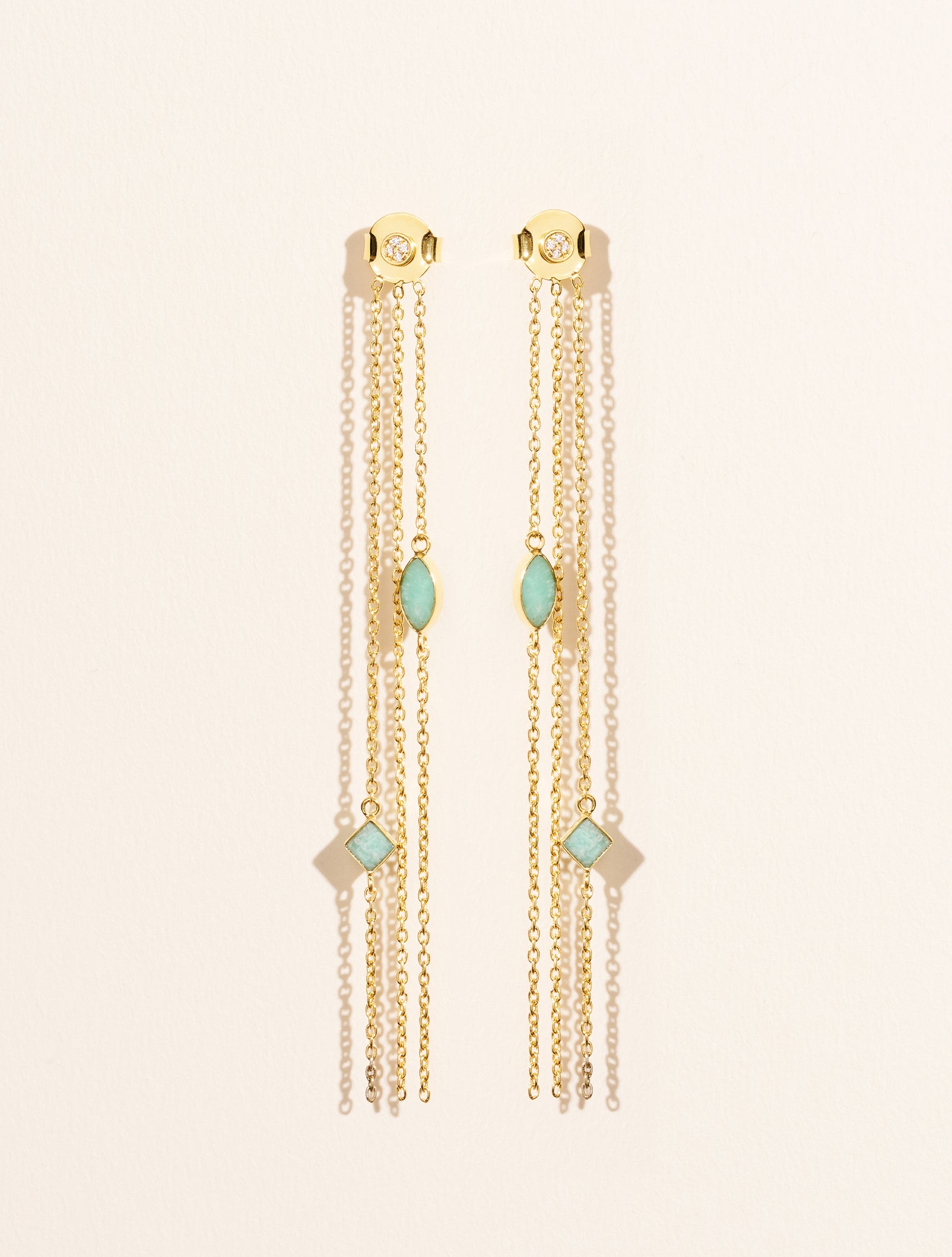 Inspiré de la culture perse, les boucles d'oreilles Shayan orneront vos oreilles tout en subtilité. Fines et discrètes, ses pierres délicates apporteront une touche d'élégance à vos tenues. Minutieusement pensées pour sublimer votre port de cou, ses chaînes viennent à l'arrière de l'oreille, un détail unique et tendance pour un style distingué.