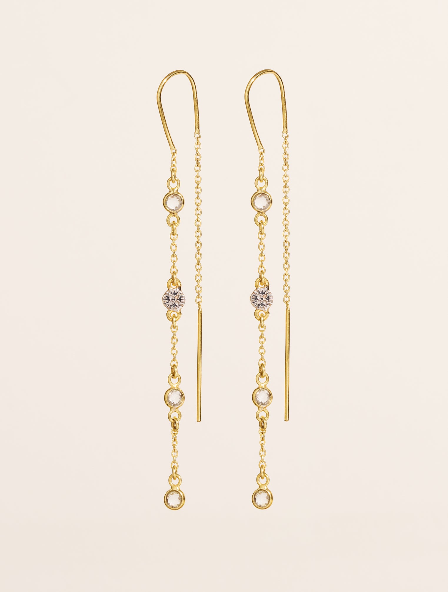 Graphiques, dansantes et précieuses, ces boucles d'oreilles en Zircons blanc de la collection Sitara jouent avec la lumière.