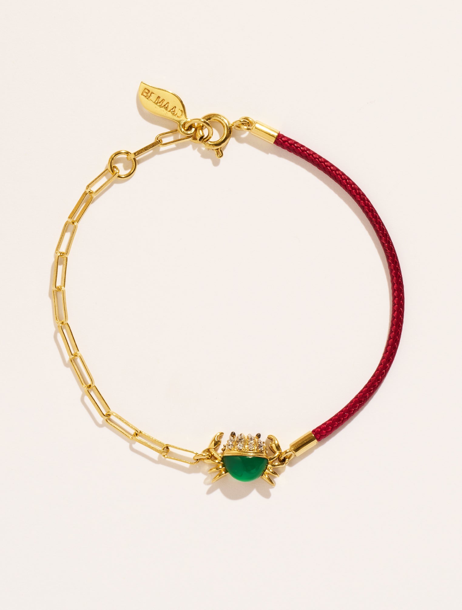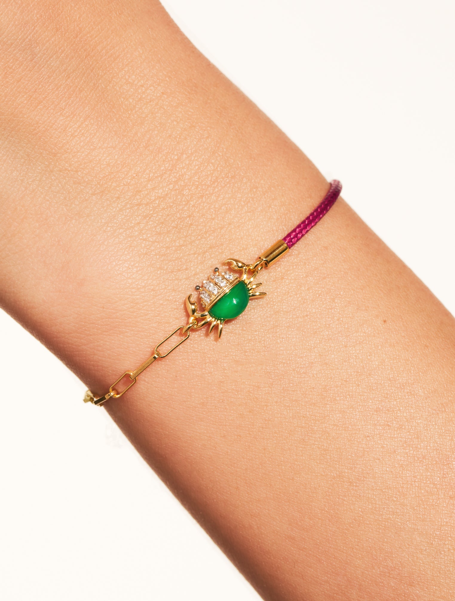 Associant chaîne fine et cordon soyeux coloré, le bracelet bi-matière Soleil Sauvage réinvente les symboles marins avec modernité. Coquillage, poisson et crabe se métamorphosent en pendentifs chics et graphiques, capturant l’essence de la nature avec une élégance inattendue. Loin d’être réservé à l’été, ce bijou est fait pour vivre sur votre poignet toute l’année.