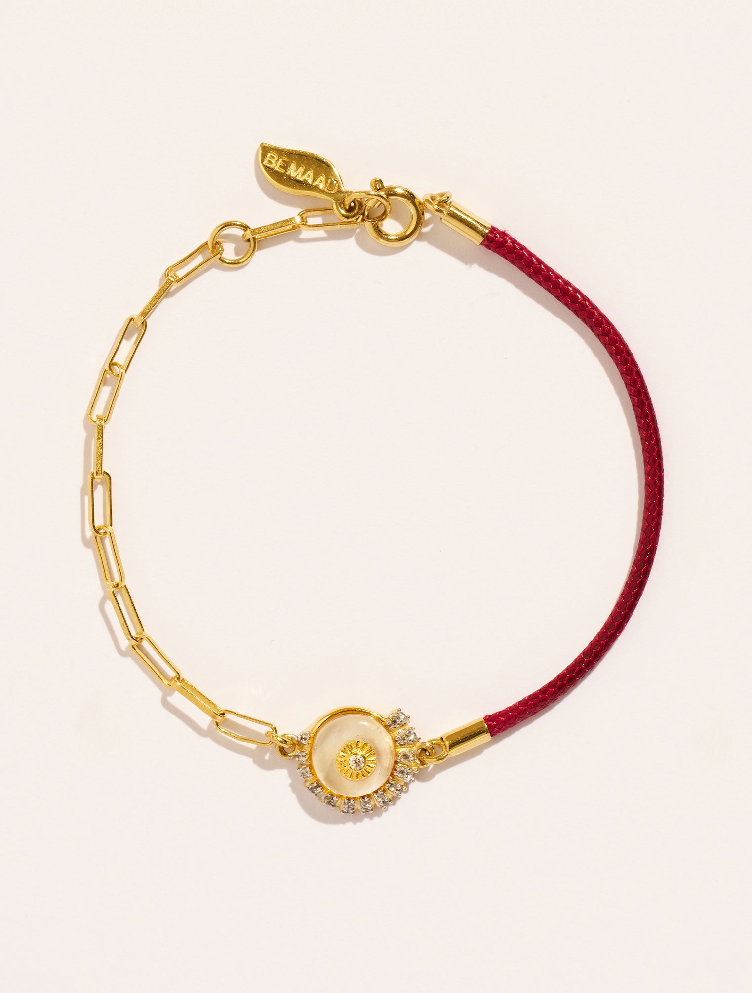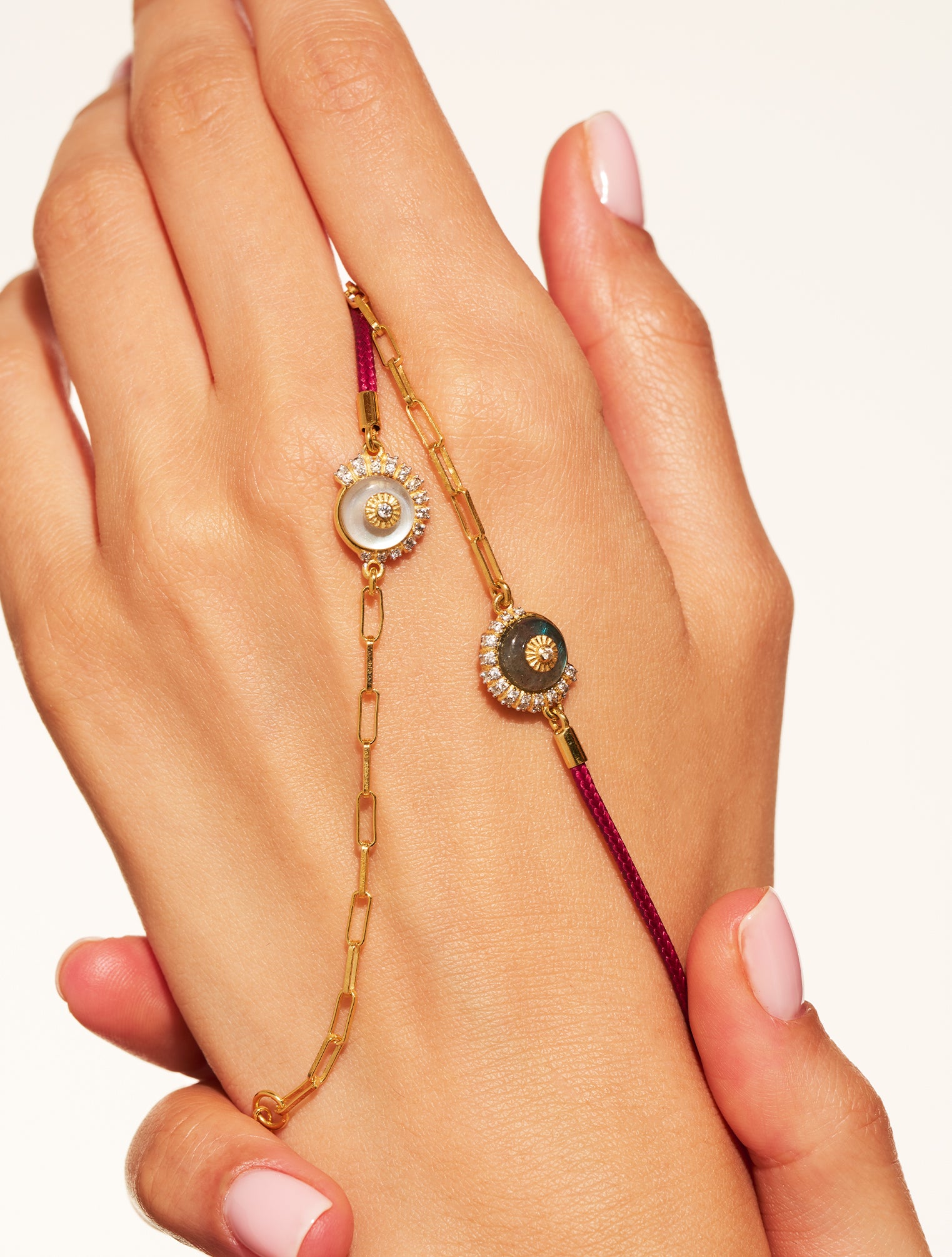 Associant chaîne fine et cordon soyeux coloré, le bracelet bi-matière Soleil Sauvage réinvente les symboles marins avec modernité. Coquillage, poisson et crabe se métamorphosent en pendentifs chics et graphiques, capturant l’essence de la nature avec une élégance inattendue. Loin d’être réservé à l’été, ce bijou est fait pour vivre sur votre poignet toute l’année.