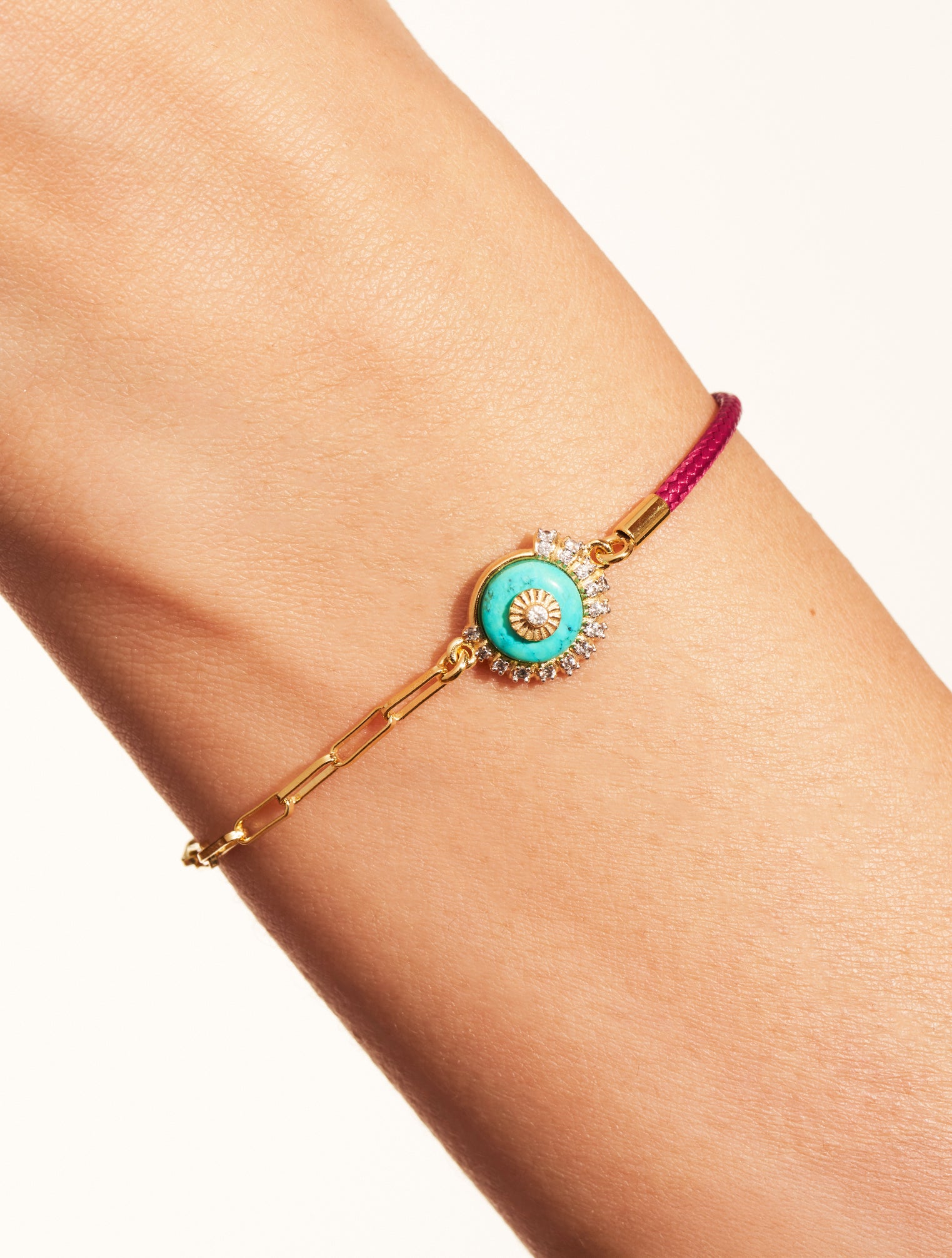 Associant chaîne fine et cordon soyeux coloré, le bracelet bi-matière Soleil Sauvage réinvente les symboles marins avec modernité. Coquillage, poisson et crabe se métamorphosent en pendentifs chics et graphiques, capturant l’essence de la nature avec une élégance inattendue. Loin d’être réservé à l’été, ce bijou est fait pour vivre sur votre poignet toute l’année.