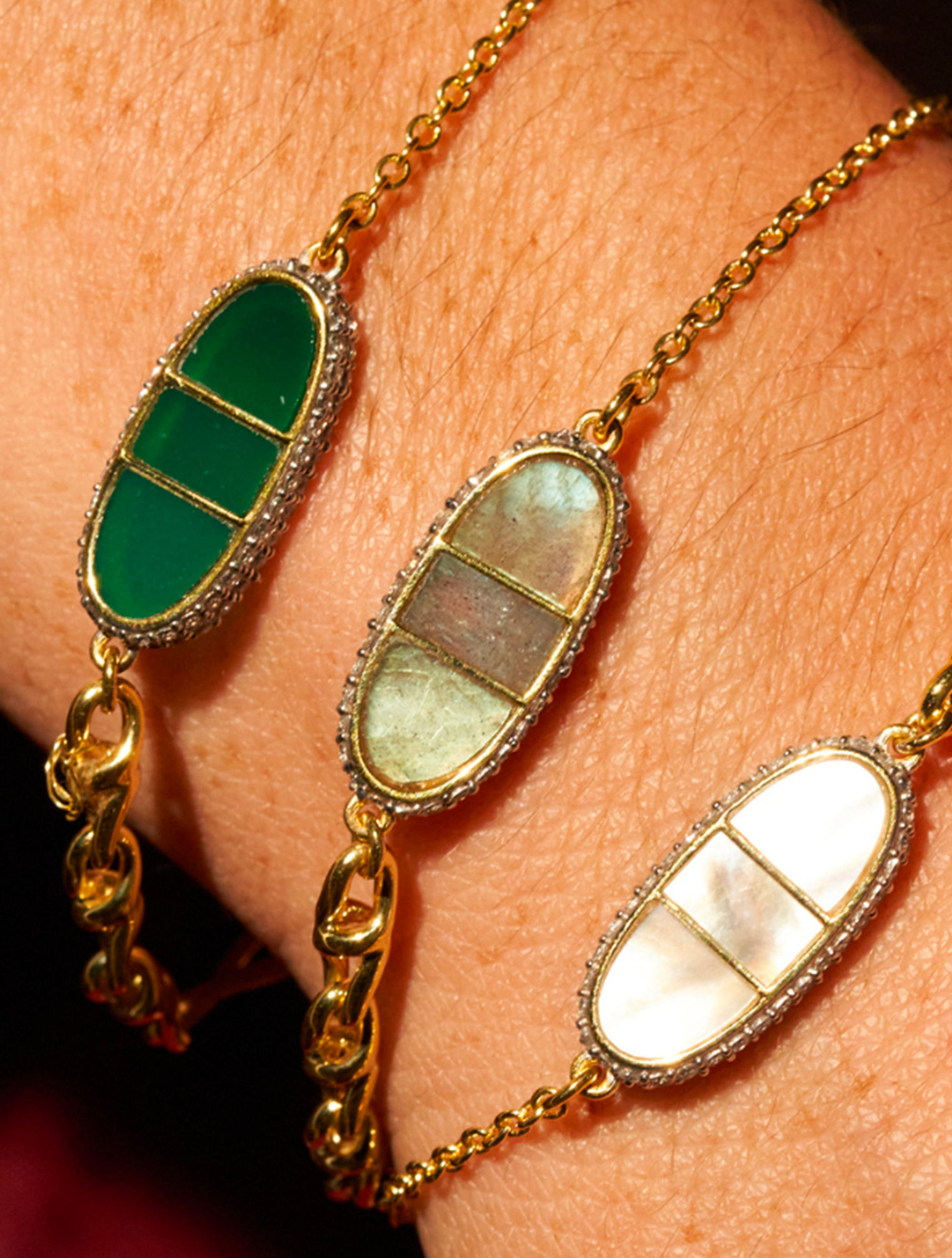 Chaque pierre est minutieusement sélectionnée pour sa singularité. Ses teintes, nuances et motifs naturels peuvent varier, rendant chaque bijou absolument unique. Ce modèle est disponible dans 6 pierres différentes.