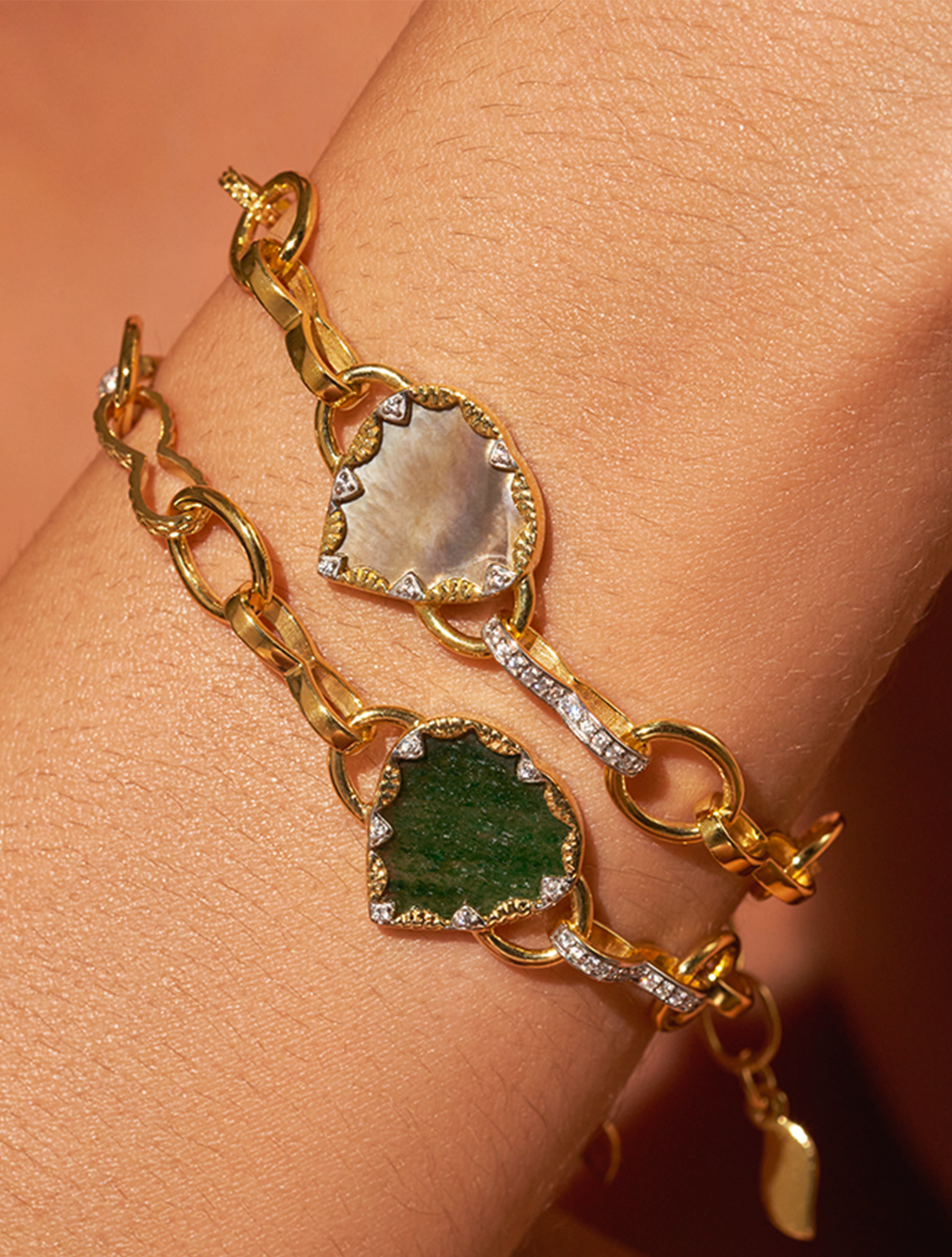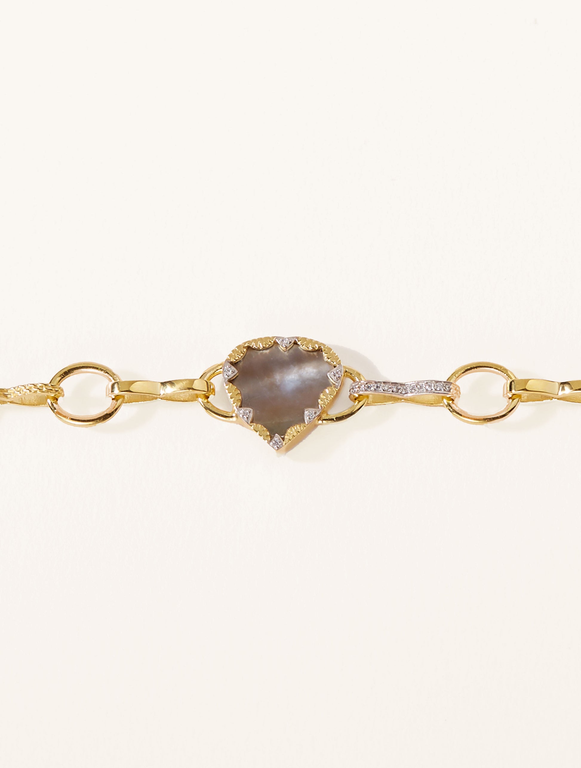 Envoûtant grâce à sa pierre en forme de coeur, le bracelet Lima en Nacre Rose est orné de pierres fines singulières.