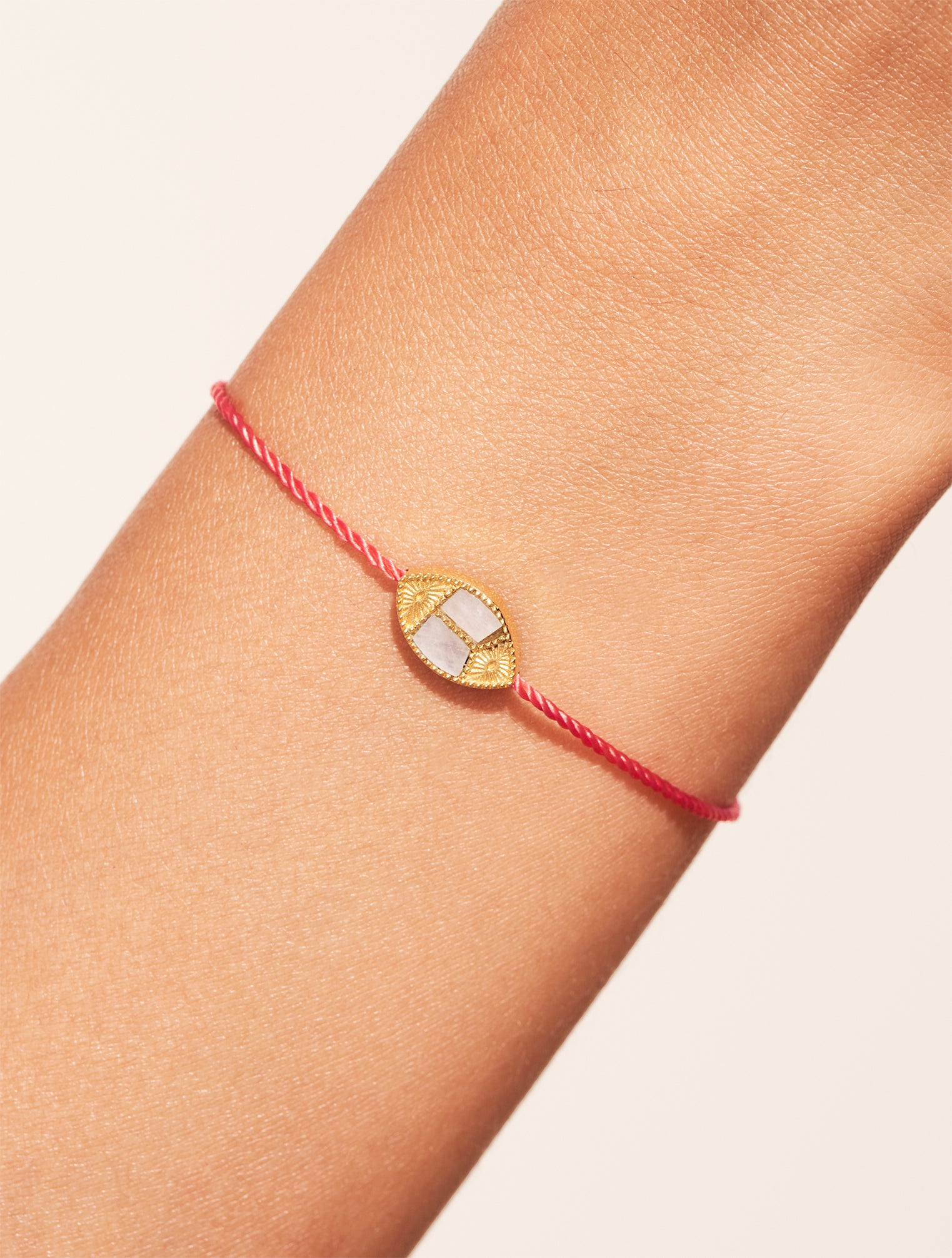 Le bracelet Mina en Pierre de Lune rappelle les bracelets de vacances qui ajoute une dose de peps à vos looks de tous les jours.