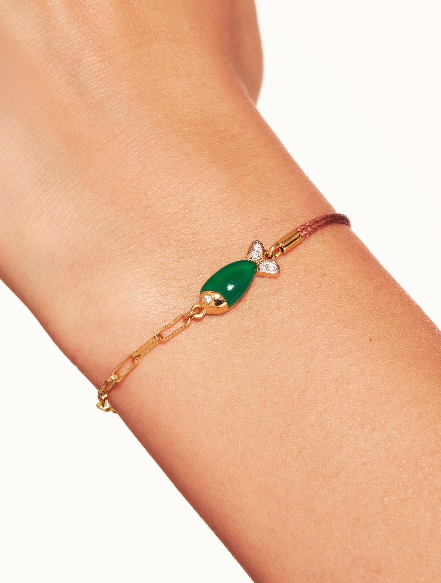 Associant chaîne fine et cordon soyeux coloré, le bracelet bi-matière Soleil Sauvage réinvente les symboles marins avec modernité. Coquillage, poisson et crabe se métamorphosent en pendentifs chics et graphiques, capturant l’essence de la nature avec une élégance inattendue. Loin d’être réservé à l’été, ce bijou est fait pour vivre sur votre poignet toute l’année.