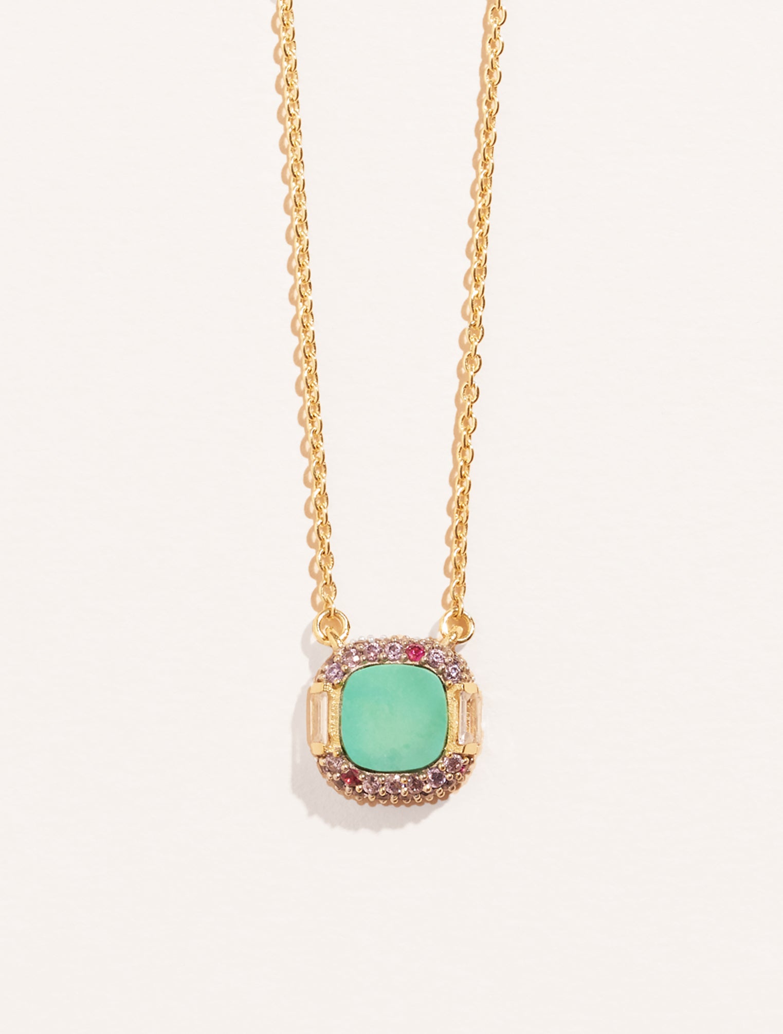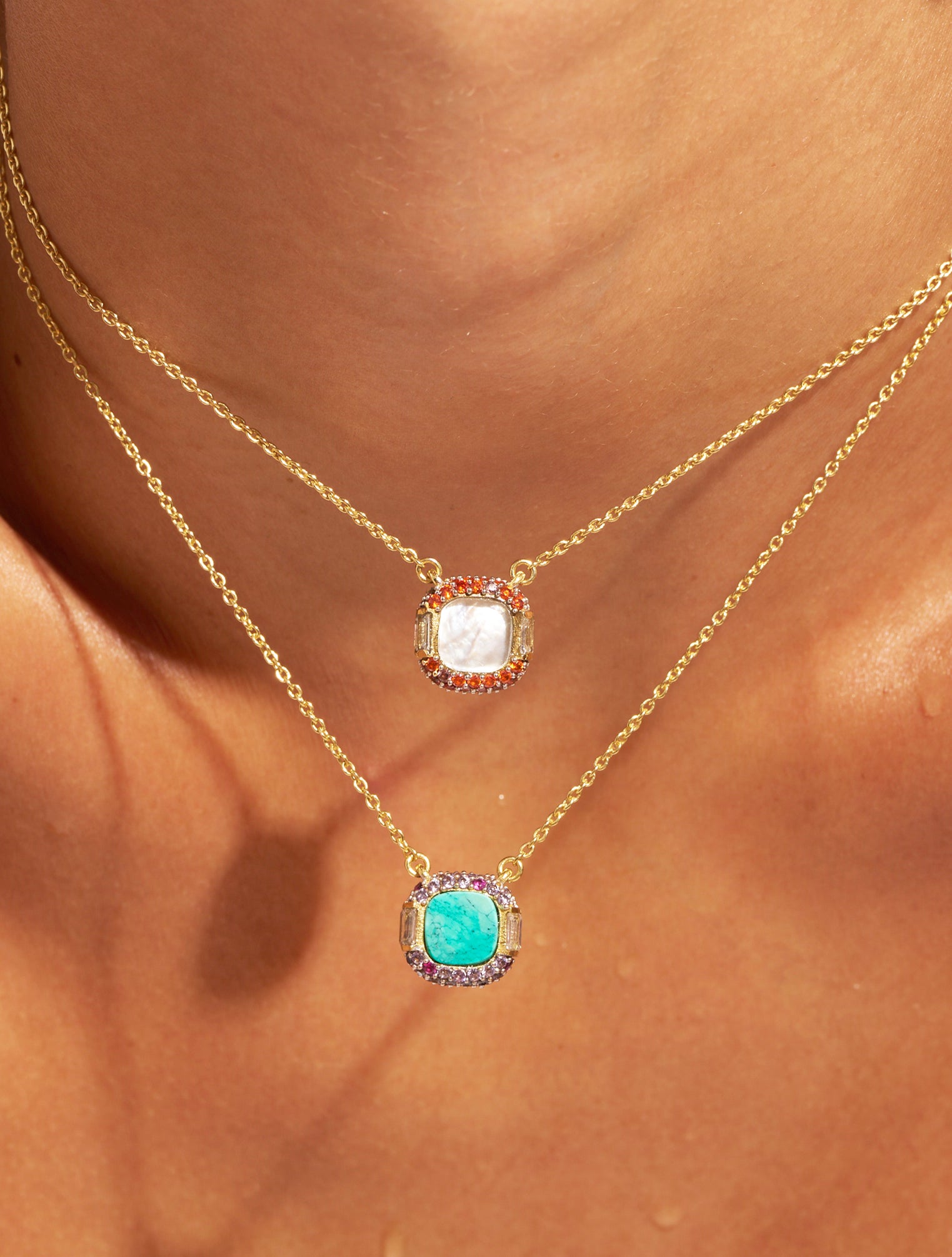 Vintage et élégant à 100%, le collier Idylle en Turquoise va charmer tous les décolletés. Fabriqué à la main par nos talentueux artisans, il se pare de sublimes et précieux détails : floraison de zircons et de pierres naturelles, combinaison de couleurs, courbes arrondies. Son jeu de contrastes apporte instantanément une touche de bonne humeur et de modernité !