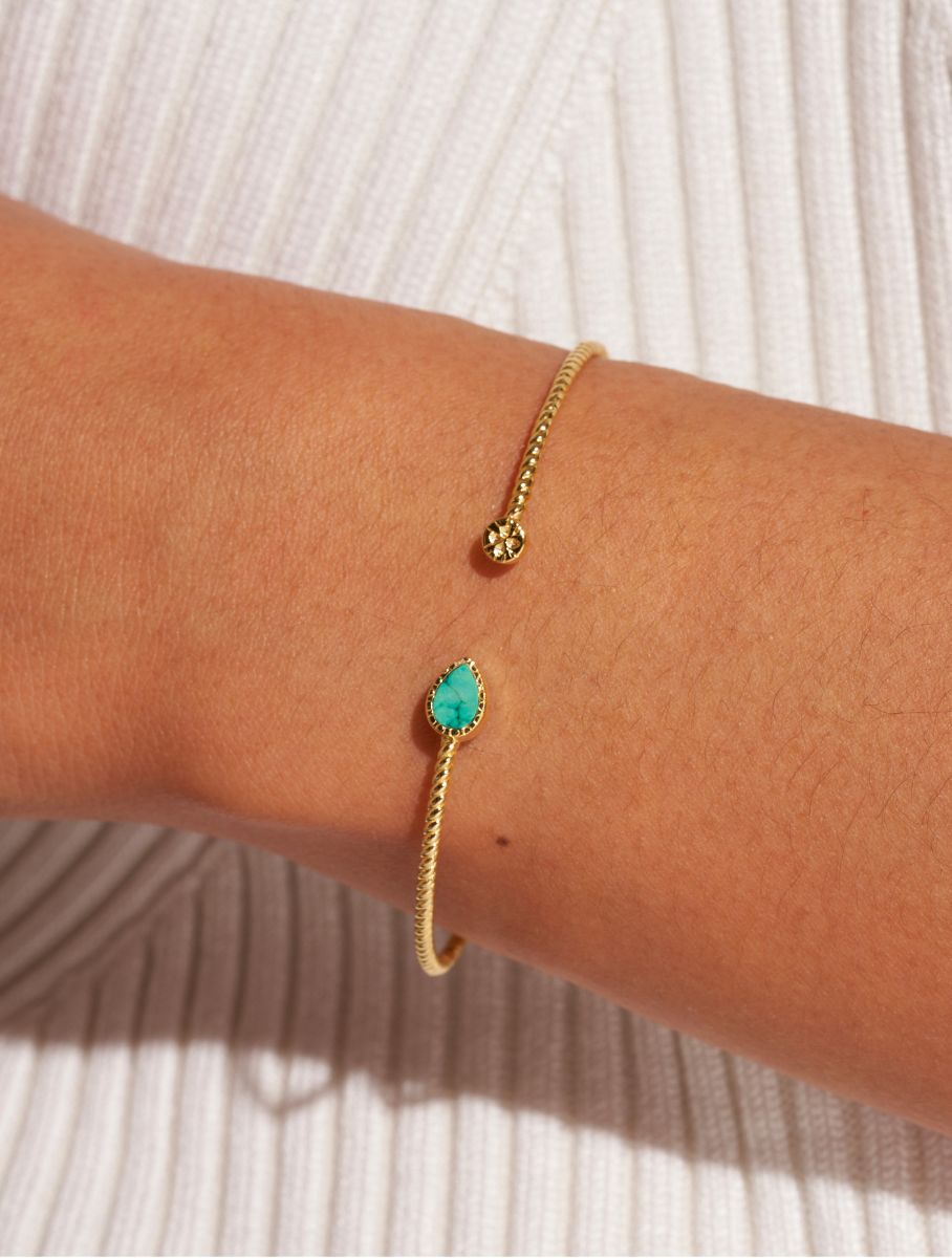 Tous nos bijoux sont confectionnés en laiton doré à l'or fin 18K et ornés de pierres naturelles semi-précieuses, soigneusement sélectionnées et façonnées à la main par nos artisans.
