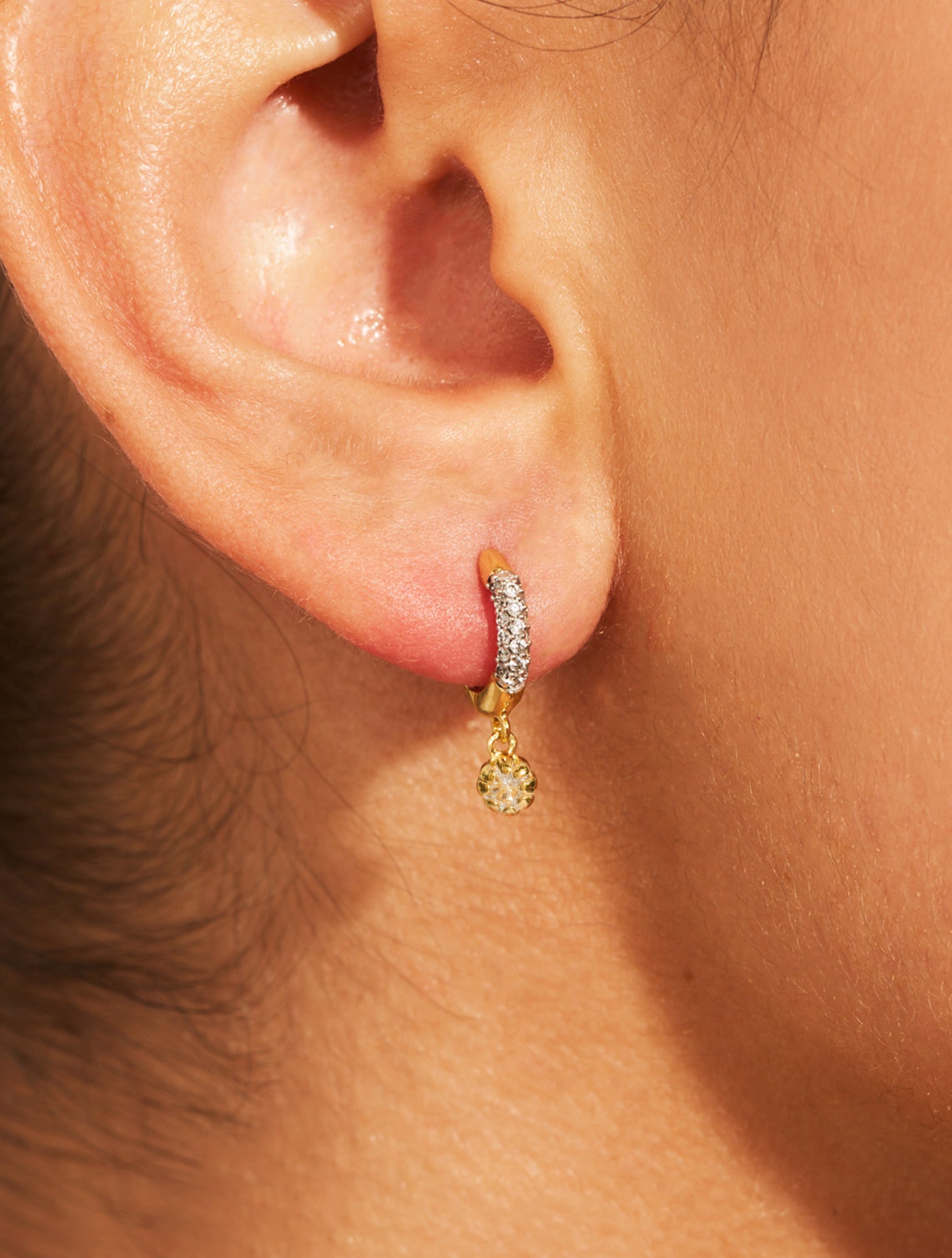 Simples et précieuses, les minis créoles pampilles Rive d’Or en zircons blancs sont une ode à la lumière. Leurs zircons sertis sur le devant révèlent un éclat subtil, tandis qu’un autre en suspension vient ajouter une touche de mouvement. Conçues pour être portées aussi bien seules qu’en accumulation, elles s’adaptent à toutes les envies, promettant un jeu de lumière discret mais captivant.