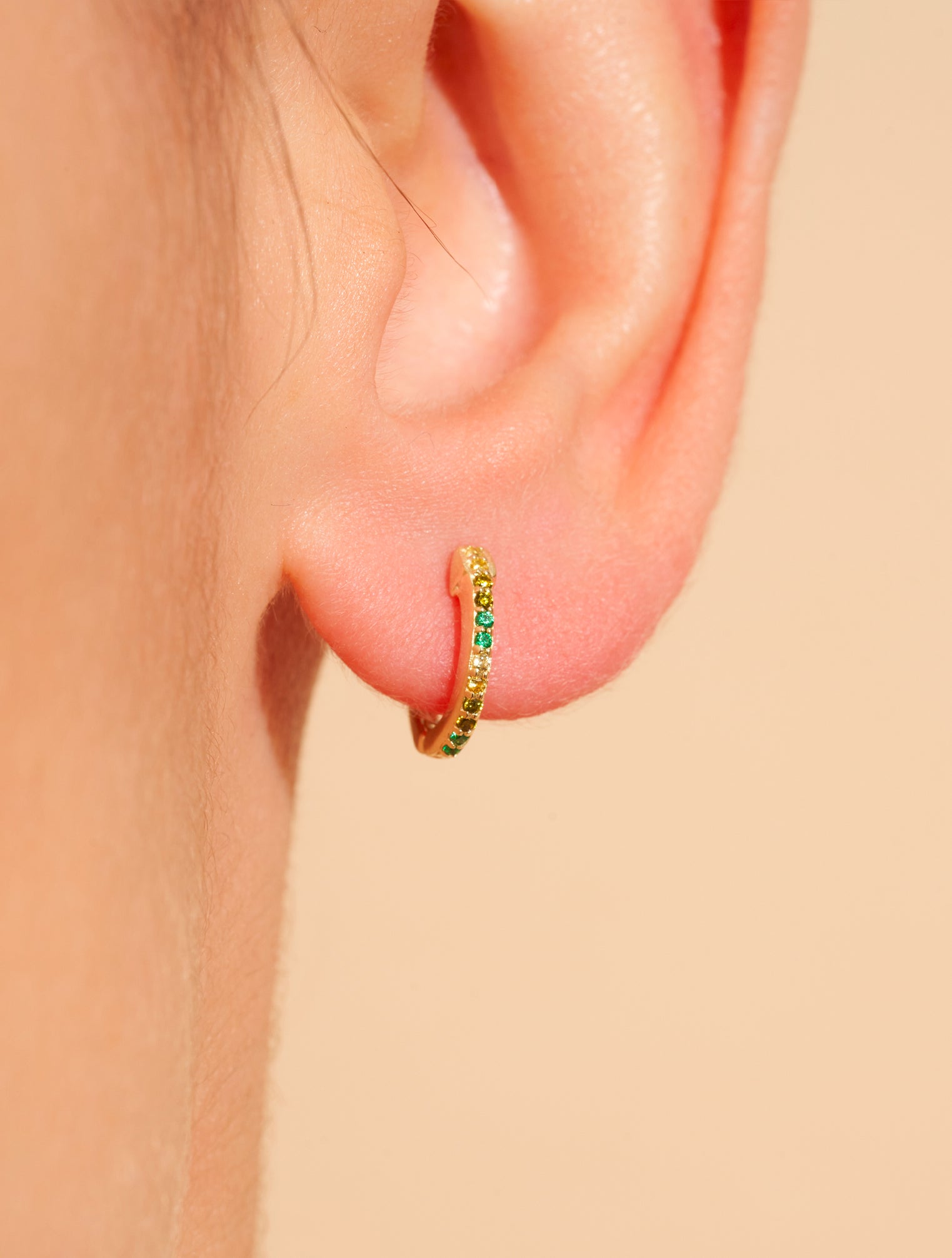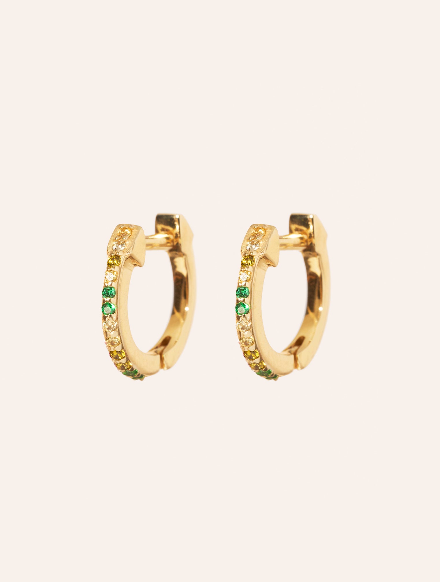 Ornées de zircons colorés taillés à la main, les parfaites mini-créoles Rheya en Zircons Vert sont prêtes à illuminer votre quotidien. Une fois suspendues à vos oreilles, ces deux halos de beauté sublimeront toutes vos tenues.