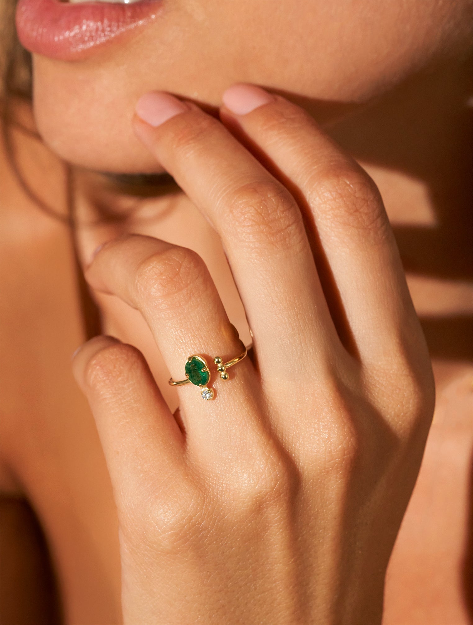 Conseil taille : Bague ajustable. Le modèle porte la bague au majeur.