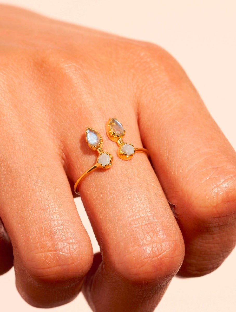 Bague Safra - Pierre de Lune et Labradorite